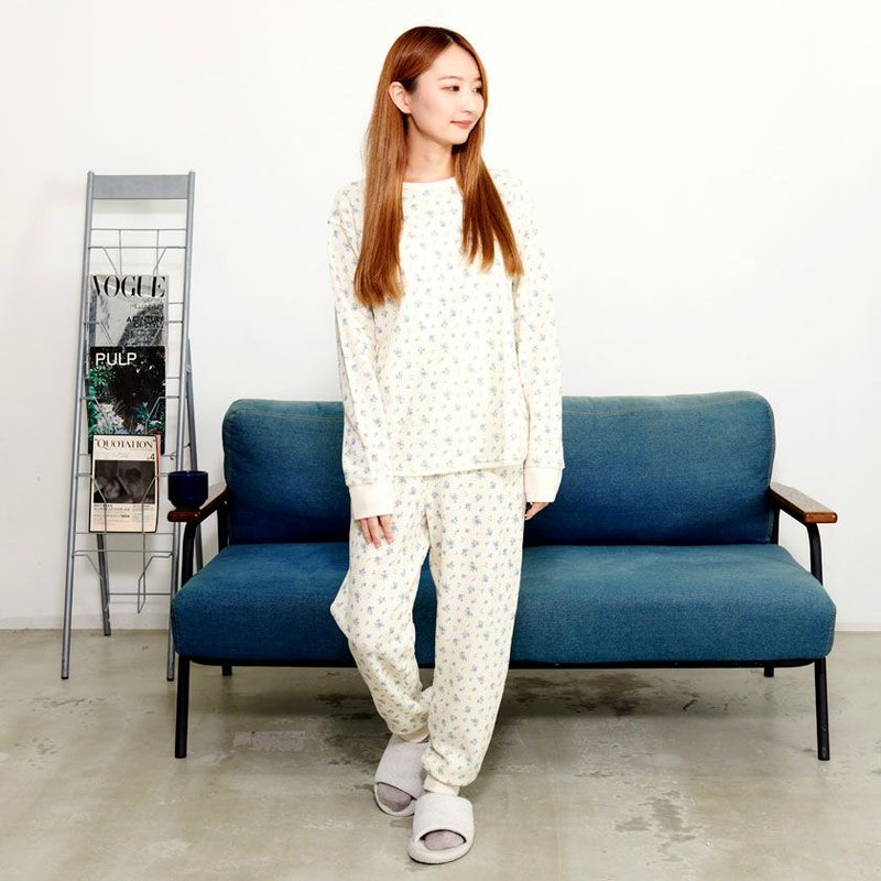 可愛らしい花柄プリントを施したルームウェア。