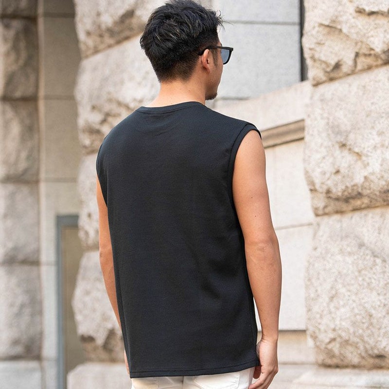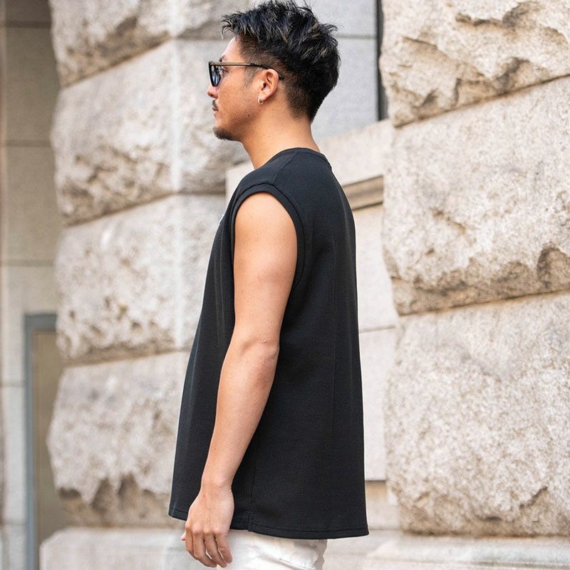 ワッフル素材なので、服が素肌に与える「着心地」は、快適に夏を過ごせること間違いなし。