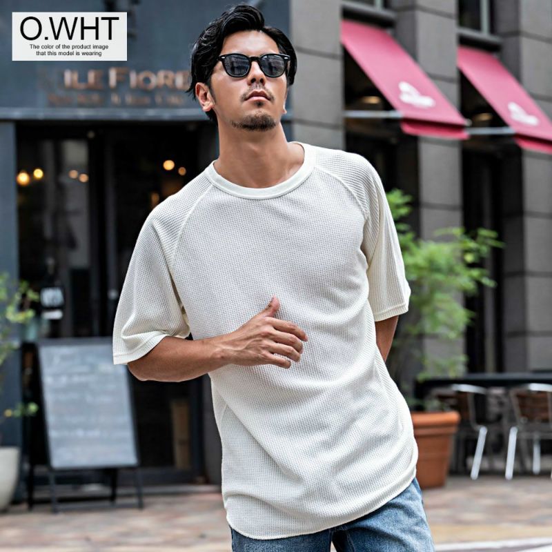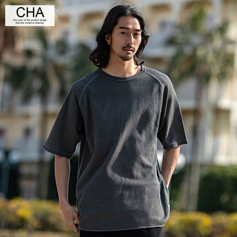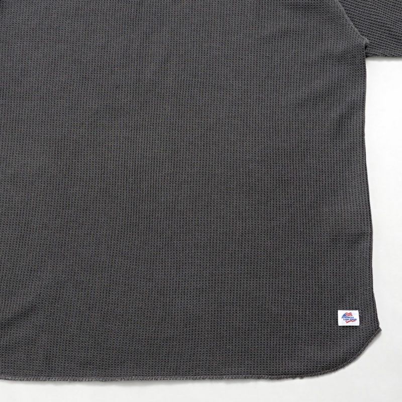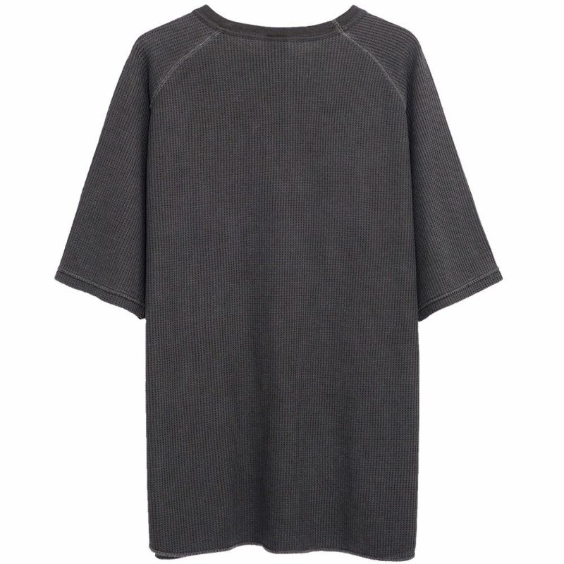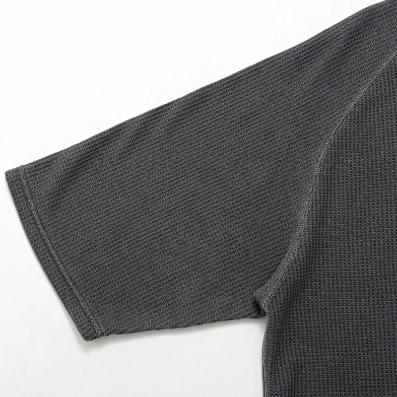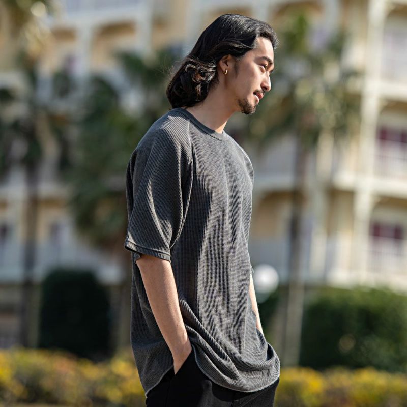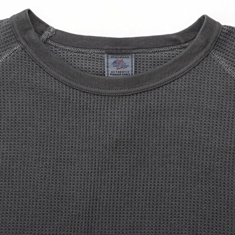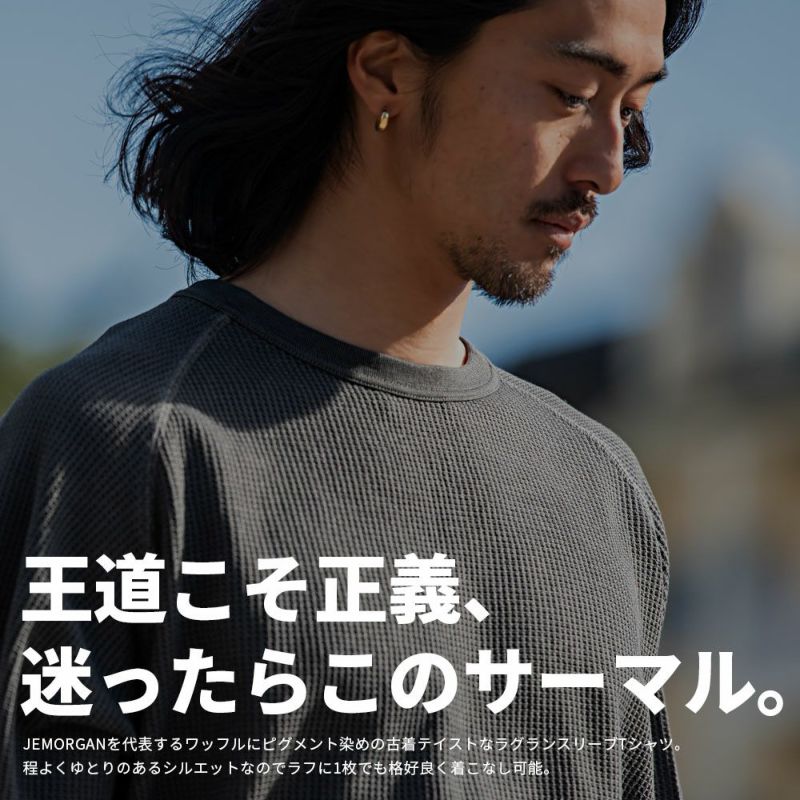 JEMORGANを代表するワッフルにピグメント染めの古着テイストなラグランスリーブTシャツ。