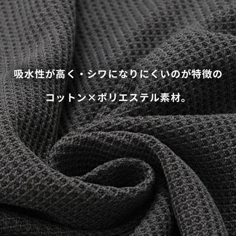 柔らかく肌触りの良いワッフルの素材感は、タウンユースだけでなく、お部屋でのリラックスウェア、キャンプ・スポーツなどのアクティブユースにもお使いいただけます。