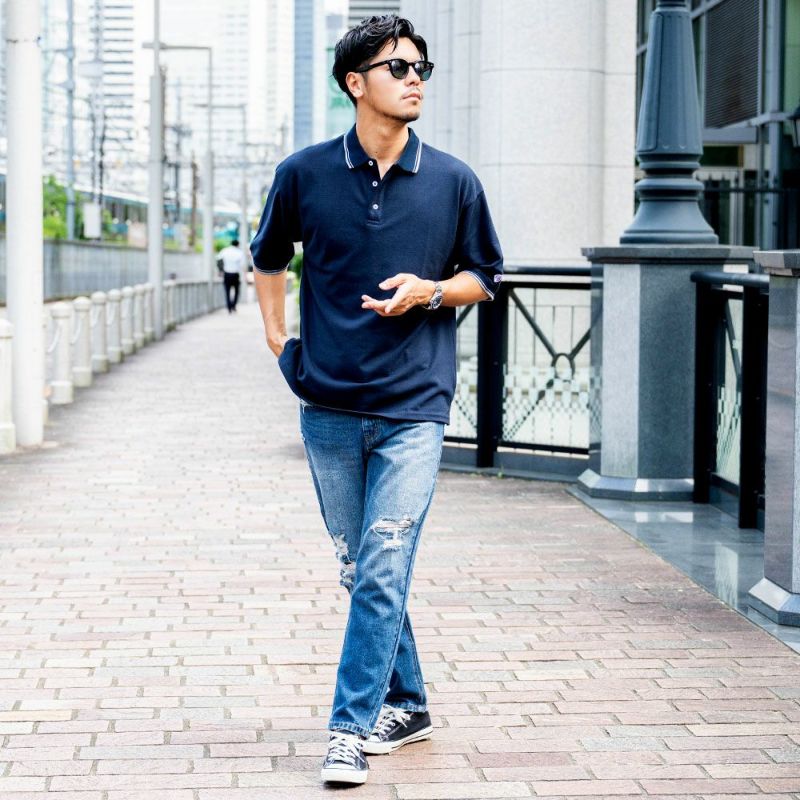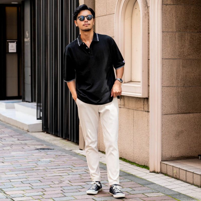 ポリエステルと綿を混紡した鹿の子素材を使用しているので、柔らかく清涼感のあるポロシャツ。