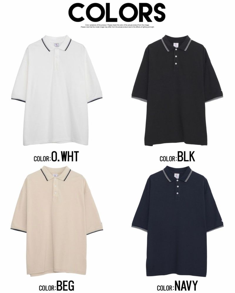 襟と袖口の配色がポイントの左袖にワンポイントでロゴワッペンが付いたポロ。