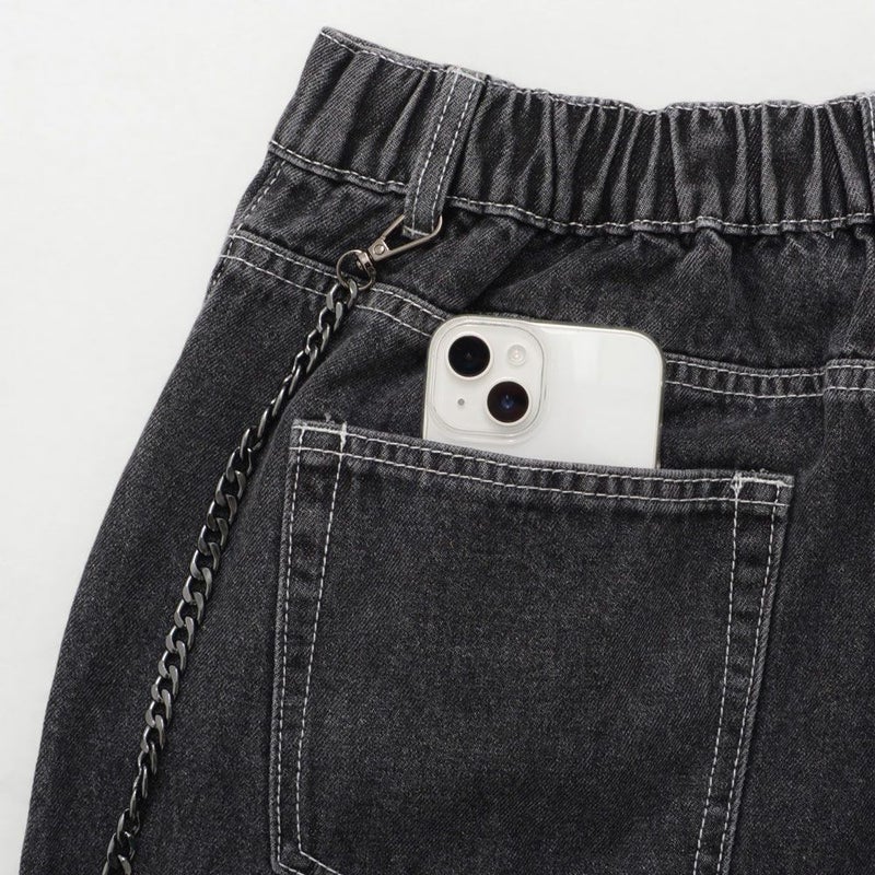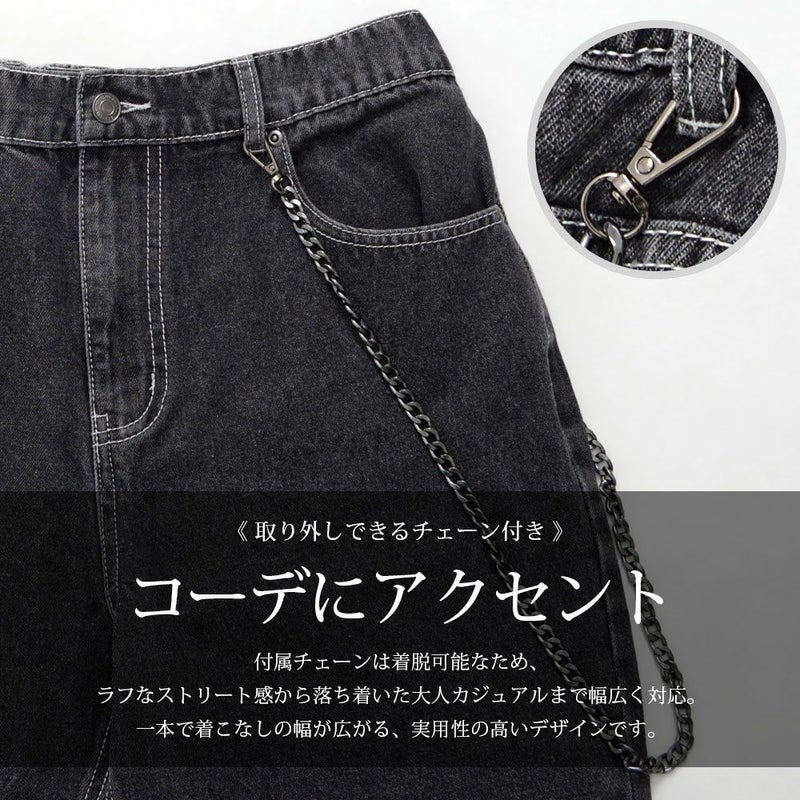 一本取り入れるだけでコーディネートの幅が広がる、今季注目のチェーン付きワイドデニムパンツです。