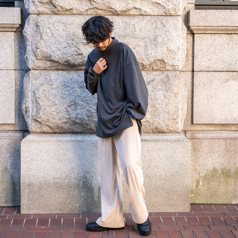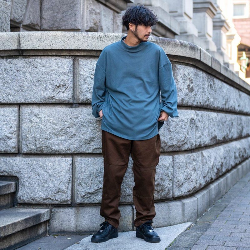 首元はクルーネックより上品な印象のモックネックになっており1枚使いでもジャケットと合わせても大人っぽい着こなしになります。
