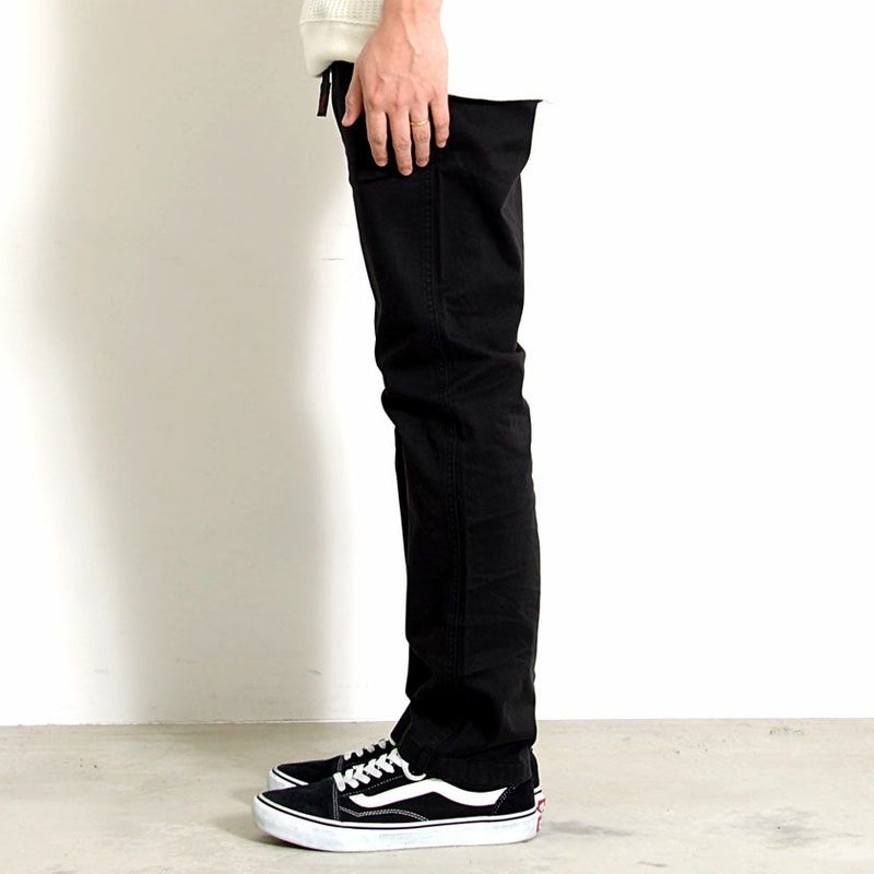 裾にかけて細くなるテーパードシルエットですがストレッチも効いているので穿き心地も抜群。