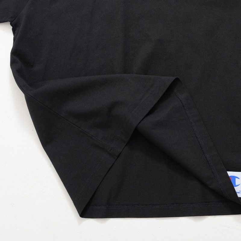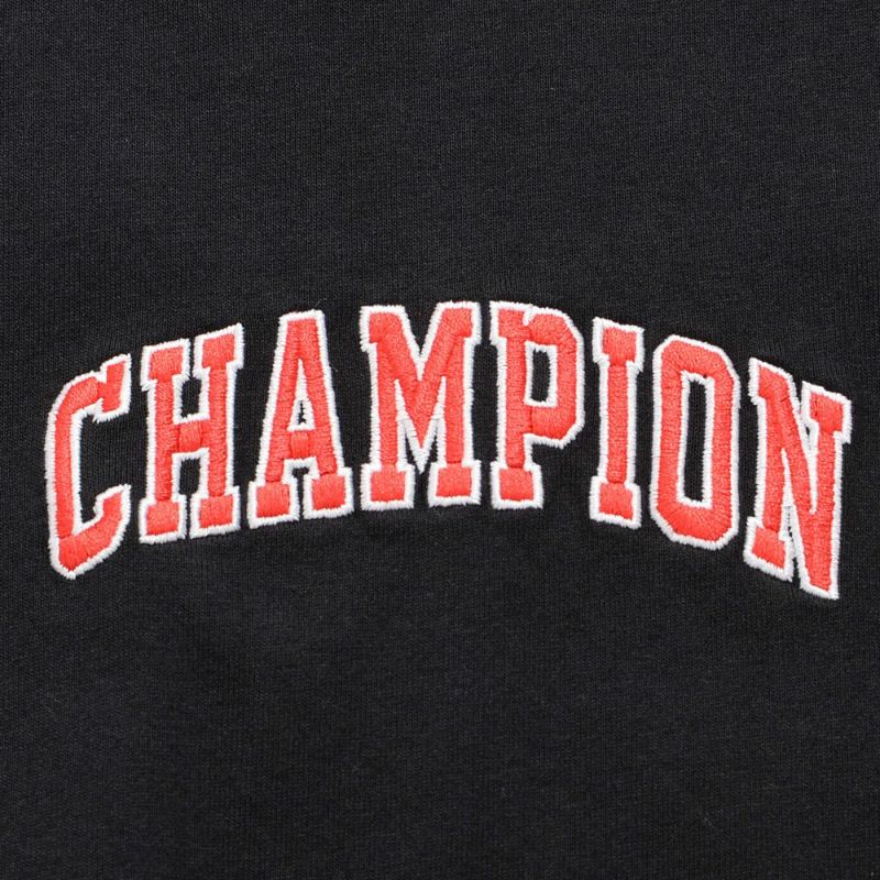 左胸にはアーチ状にデザインしたブロックフォントの「CHAMPION(チャンピオン)」刺繍入り。