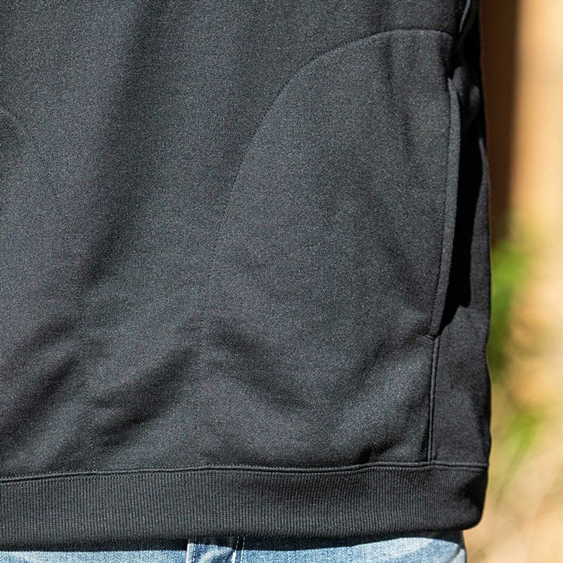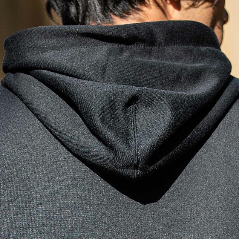 環境に配慮されたリサイクルポリエステル100%で、ストレッチ性、速乾性、軽量性の機能を備えた裏毛素材を使用したTECH WEAVER(テックウィーブ) テリー フーデッドスウェットシャツです。