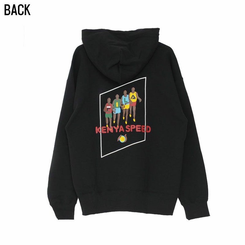 バックのイラストプリントが目を惹くインパクト抜群なプルオーバーパーカー。