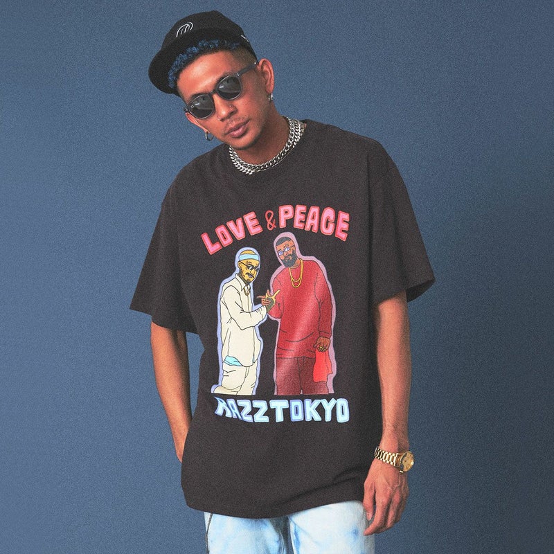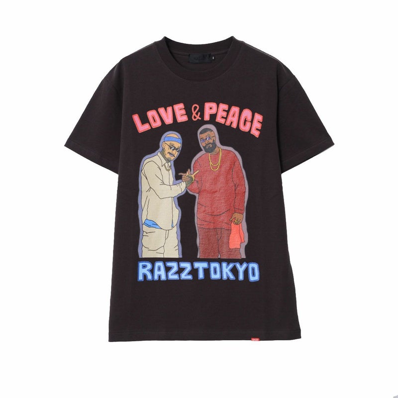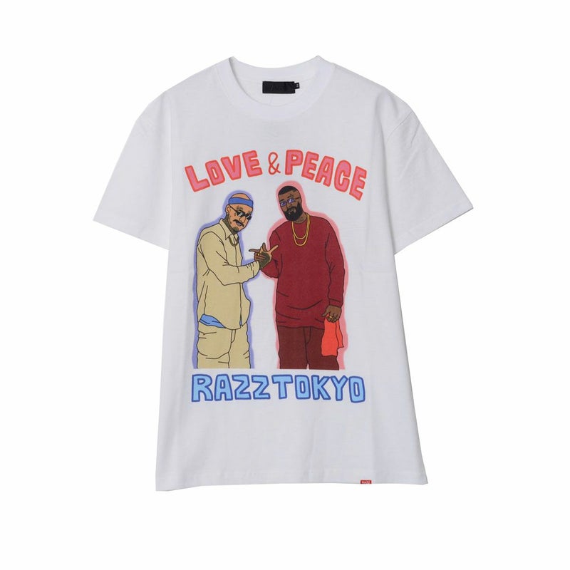 Tシャツ メンズ RAZZIS ラズ ブランド おしゃれ 大人 カジュアル トップス カットソー 半袖 半袖Tシャツ ラブ ピース クルーネック プリント ホワイト チャコール 白 ストリート 韓国 韓国系 韓国ファッション ファッション ストリート系 夏 夏服 春 春服 ストリートファッション ストリート男子 東京 プレゼント 贈り物 ギフト