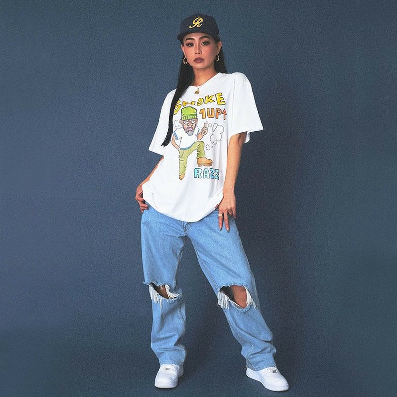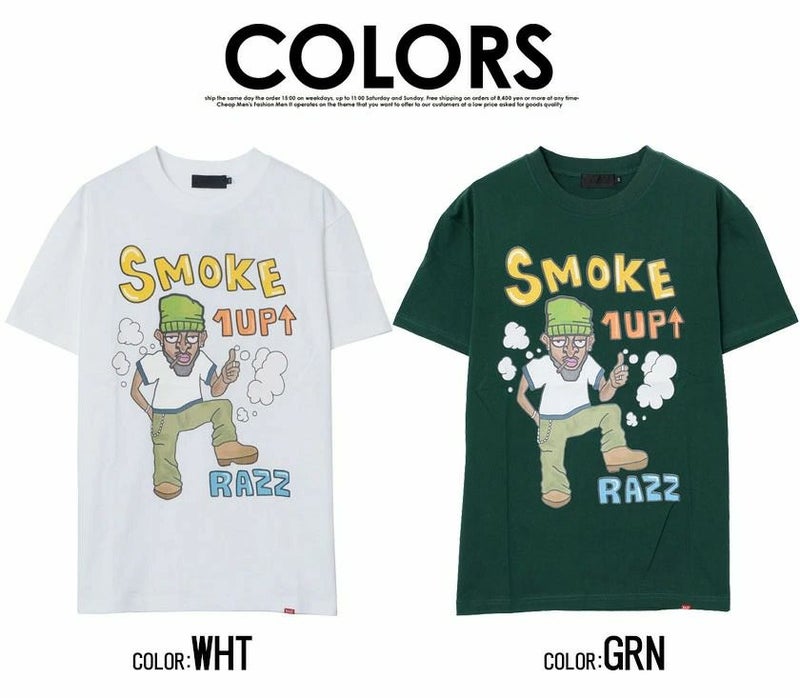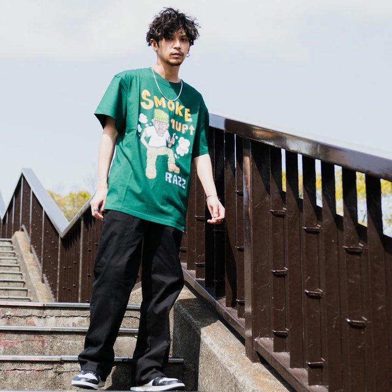 Tシャツ メンズ RAZZIS ラズ ブランド おしゃれ 大人 カジュアル ファッション トップス カットソー スモーカー プリント タバコ 煙草 ホワイト グリーン 白 緑 ストリート ストリートファッション ストリート系 韓国 韓国系 韓国ファッション 下北系 夏 夏服 ストリート男子 東京 プレゼント 贈り物 ギフト