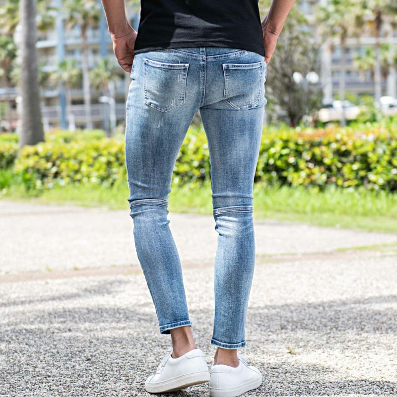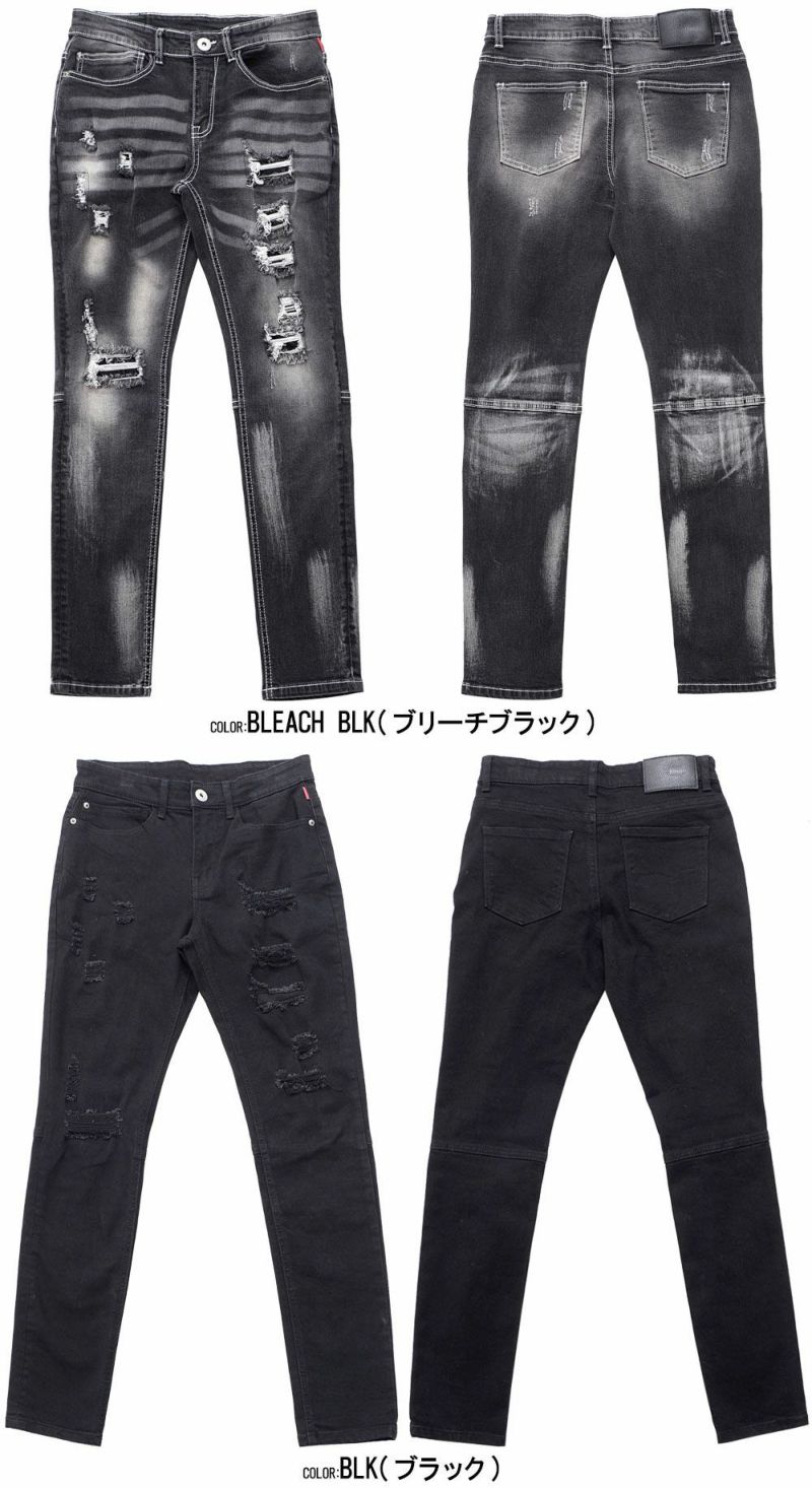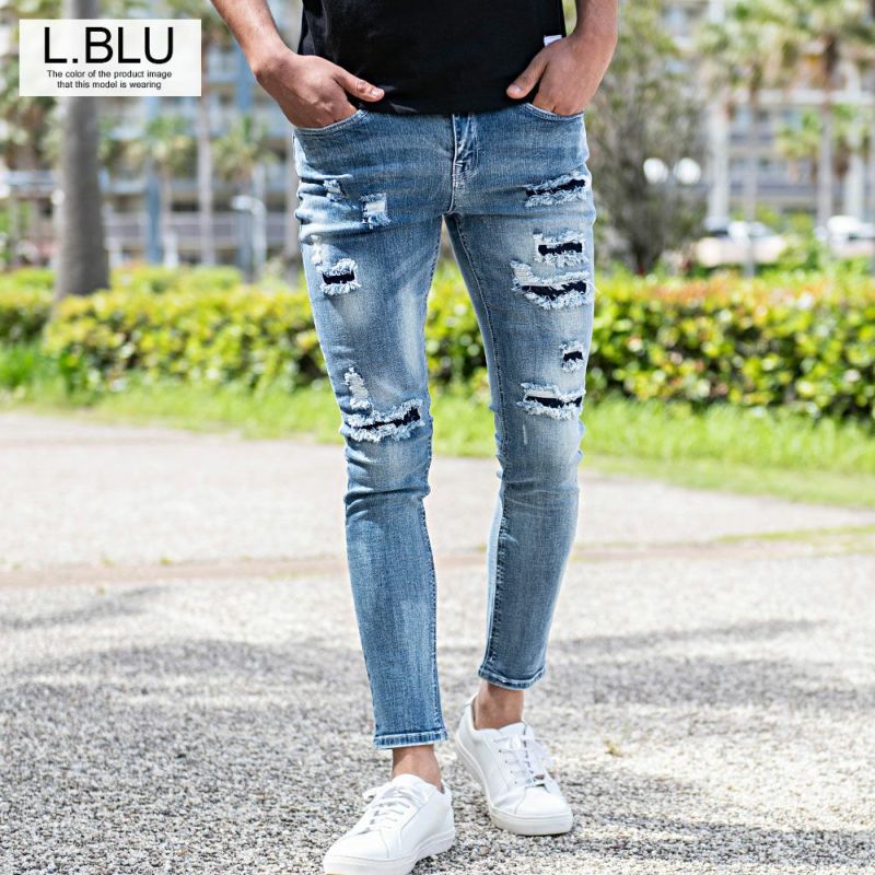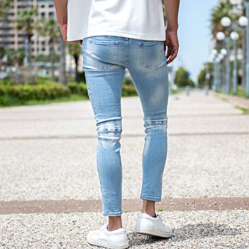 ダメージと別布リペア加工を施し、奥深く表情豊かなこだわりのスキニーパン