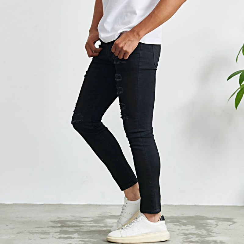 ストレッチ素材を使用し、快適な穿き心地を実現したデニムパンツ。