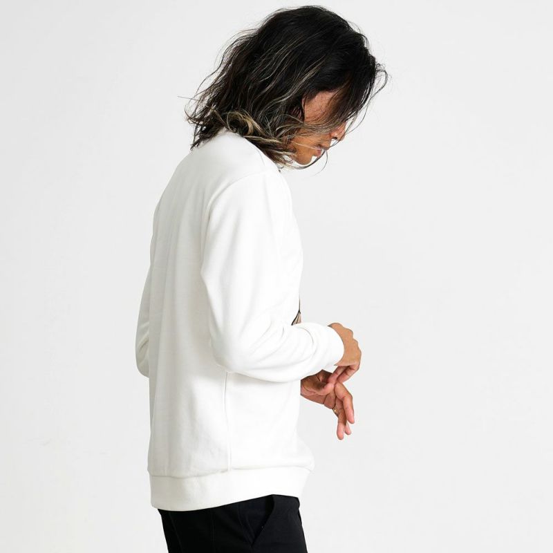 さらに、左袖にはワンポイントのラバーワッペンを配置し、ディテールにこだわった仕上がりに。