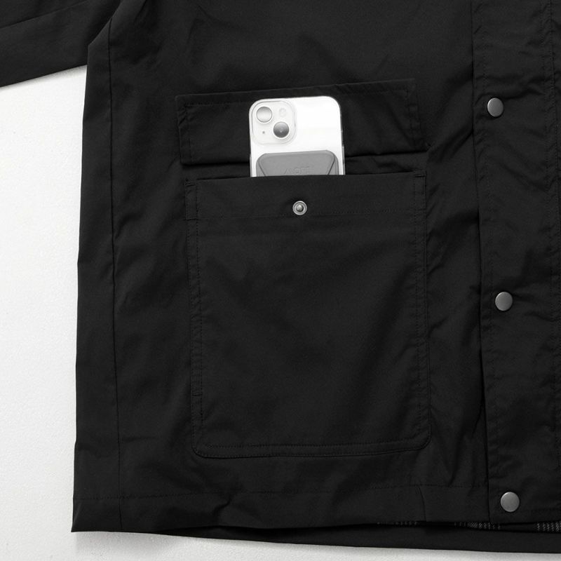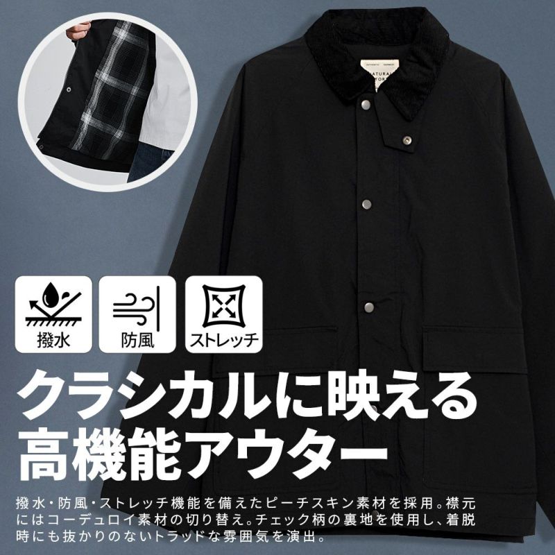 撥水・防風・ストレッチ機能を備えたピーチスキン素材を採用。