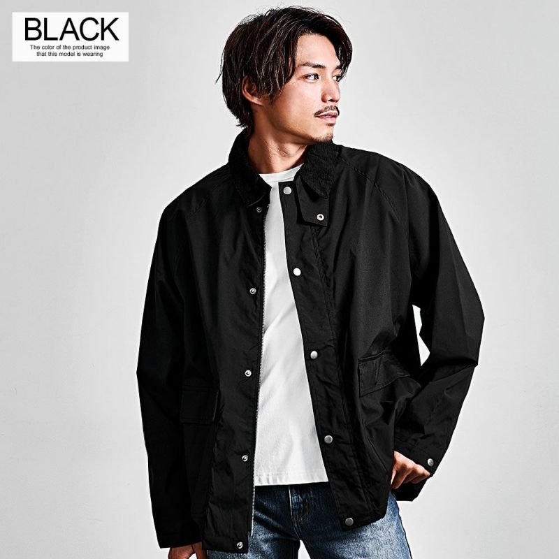 襟元にはコーデュロイ素材の切り替えを施し、ハンティングジャケットらしいデザインに。