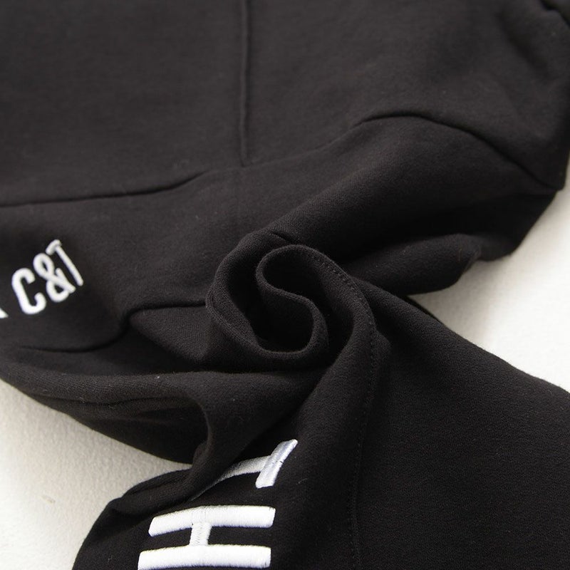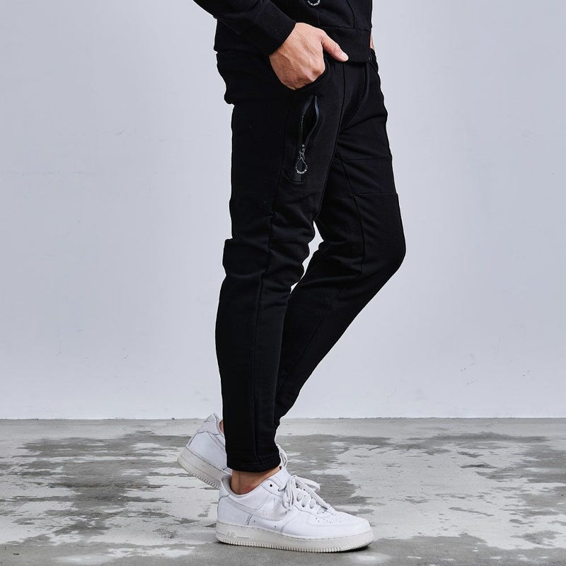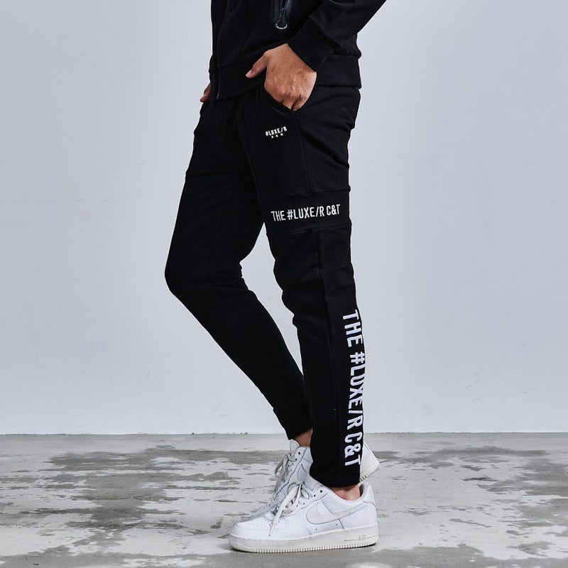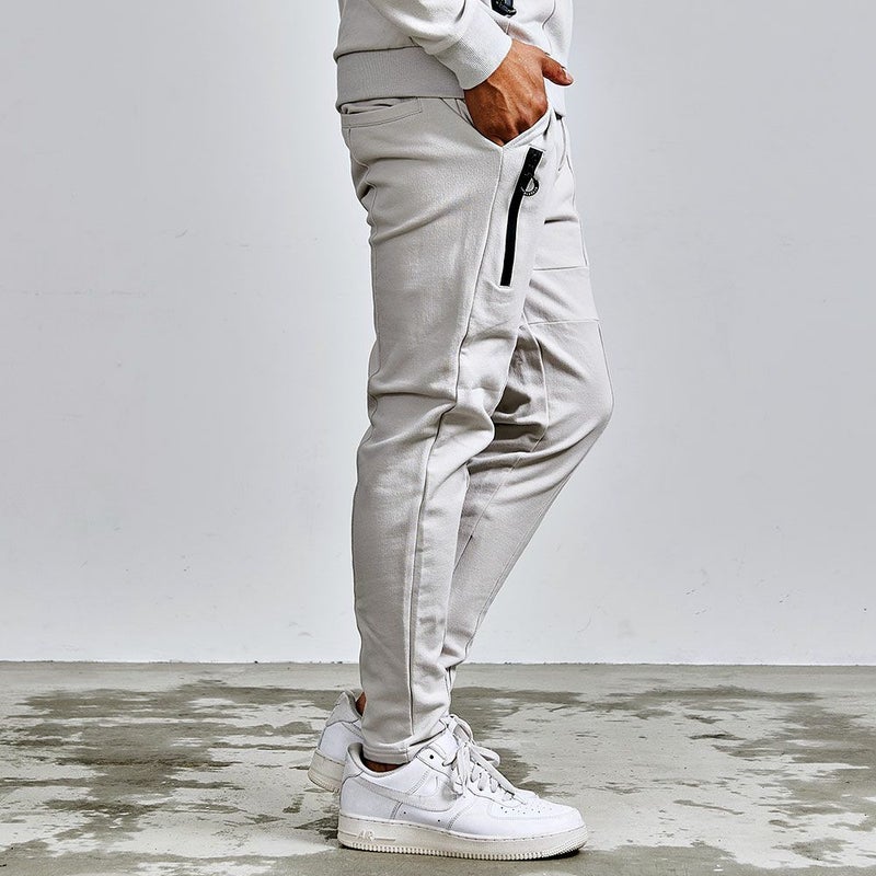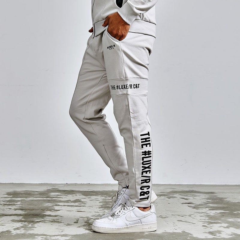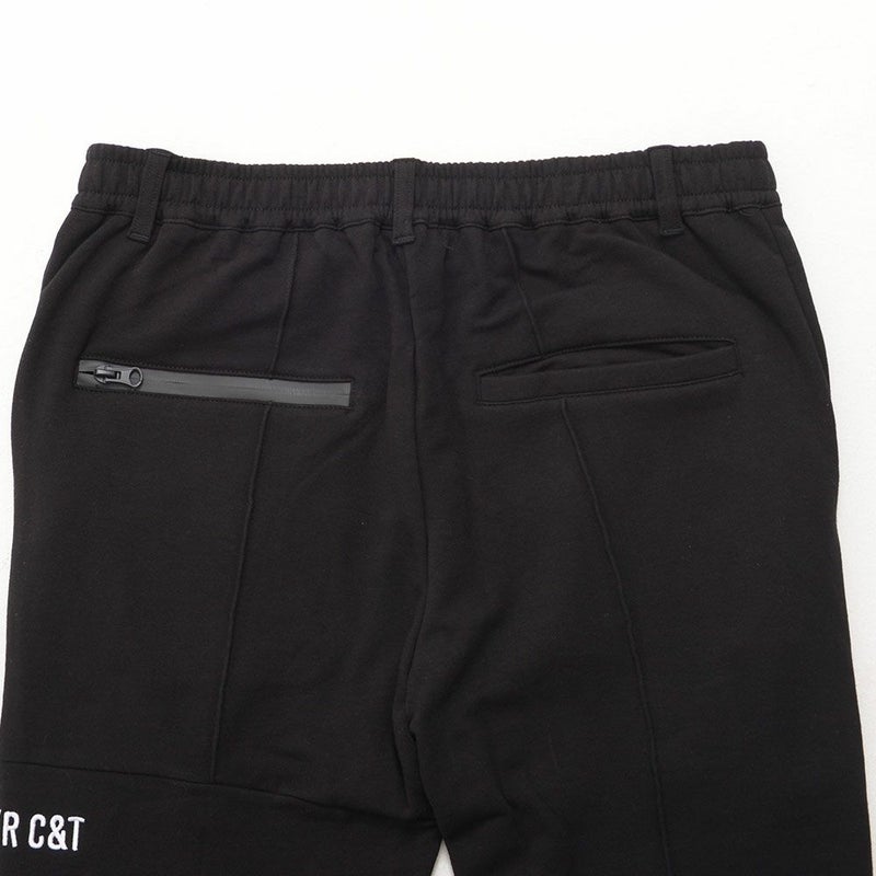 フロントや裾のジップや切替デザインがモードなアクセントとなり、サイドや脚後部に入ったロゴプリントがストリート感をプラス。