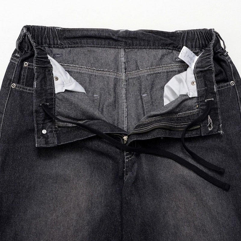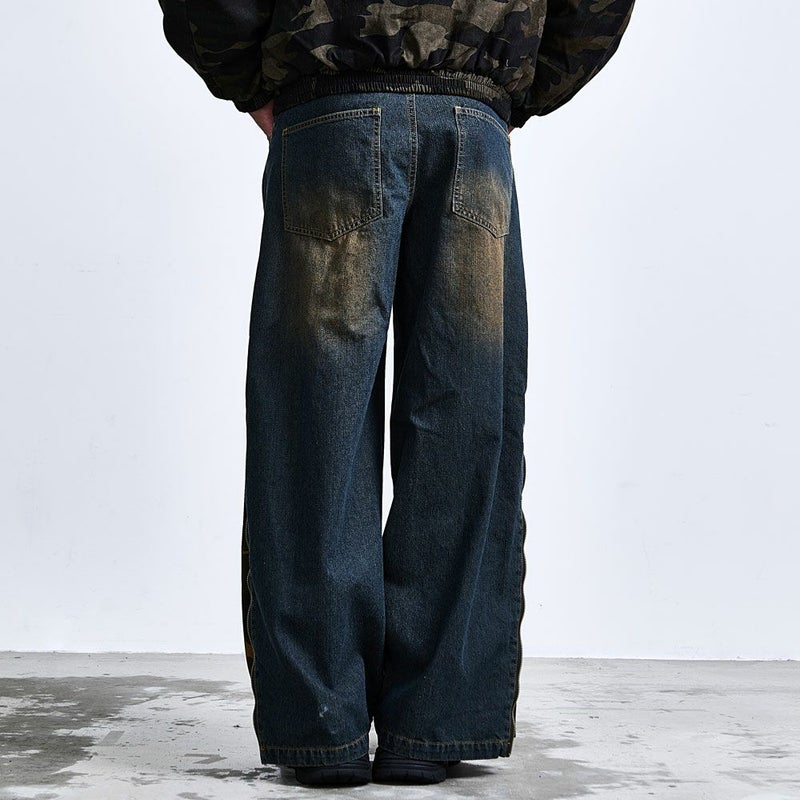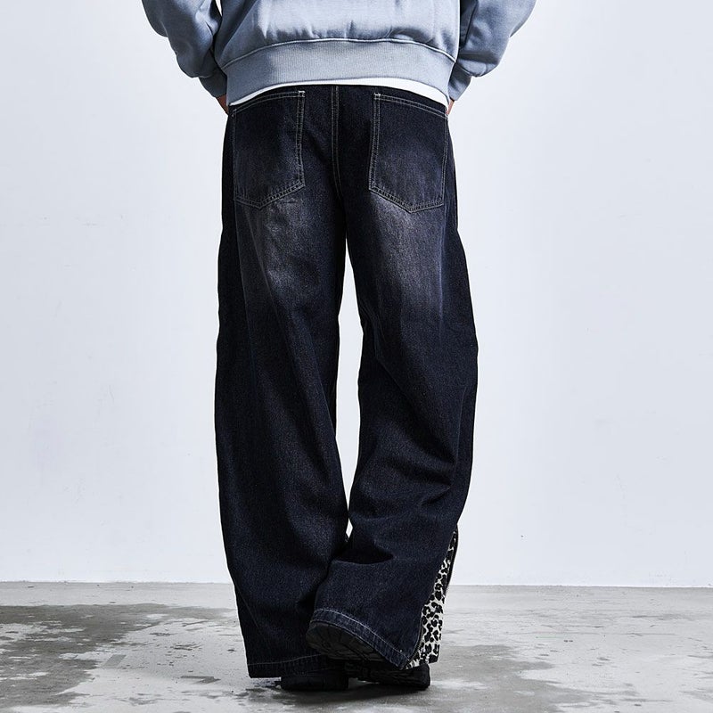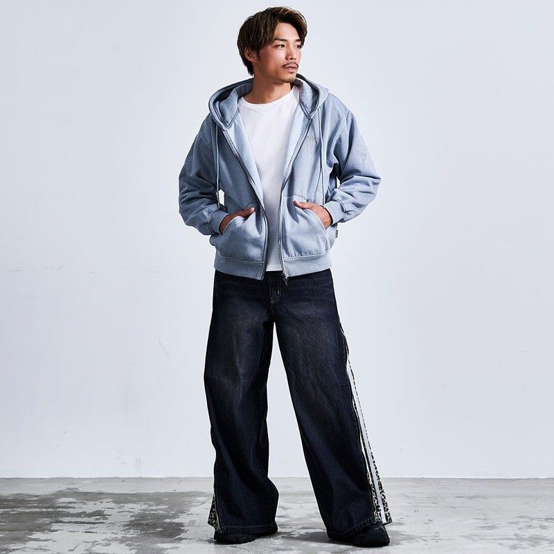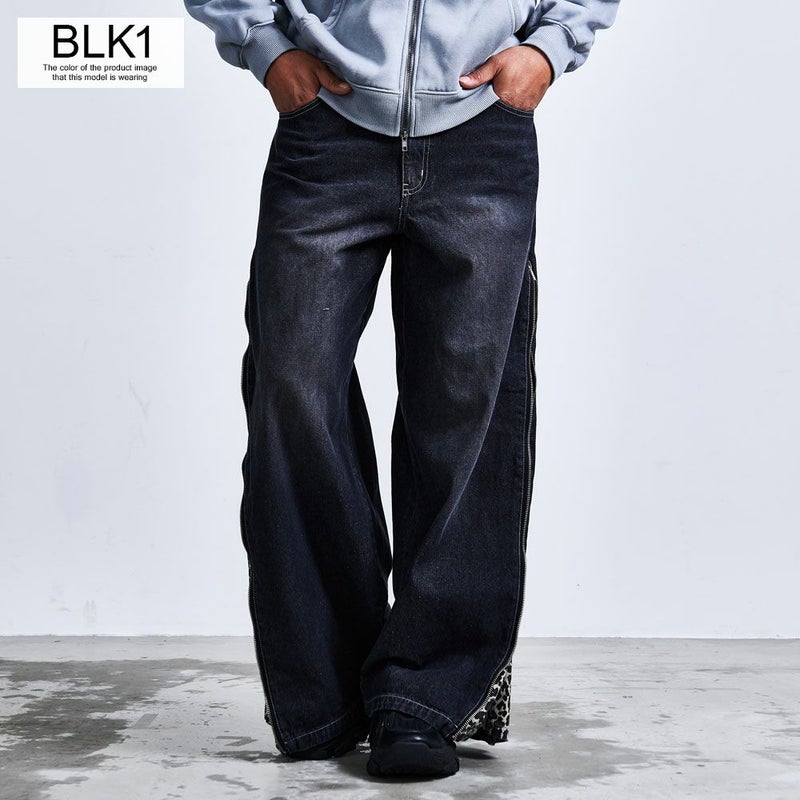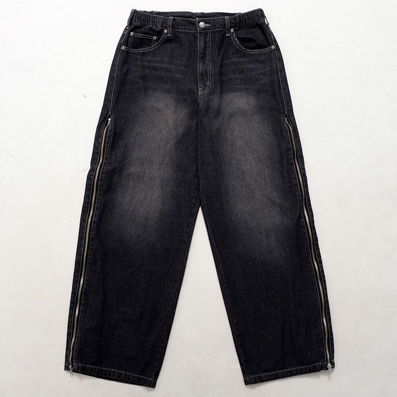 ワイドシルエットに大胆なアクセントを効かせた、主役級のZIP TRICKバギーデニムパンツ。