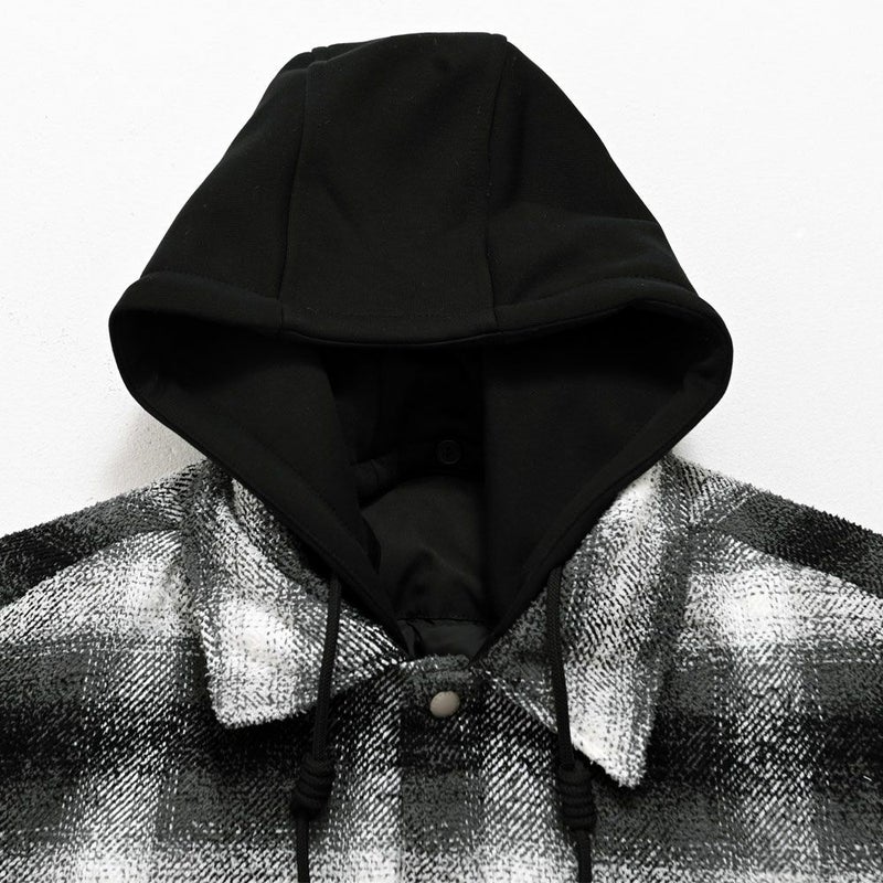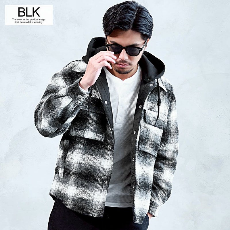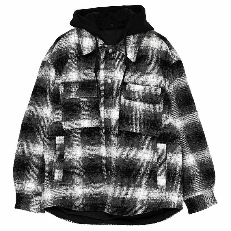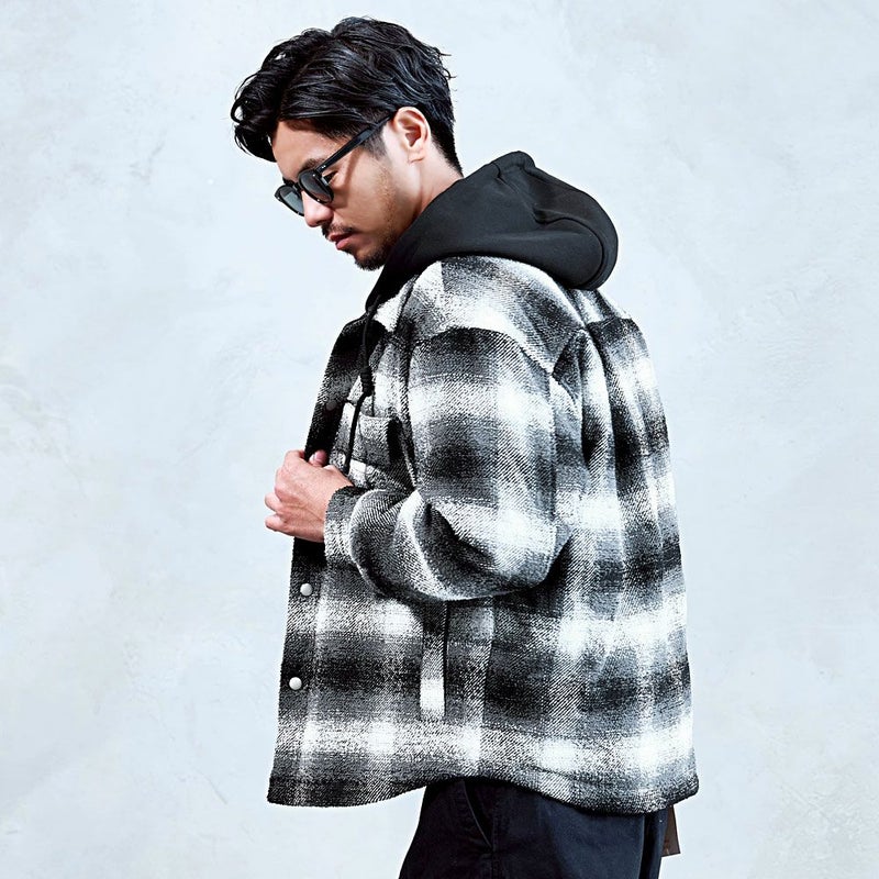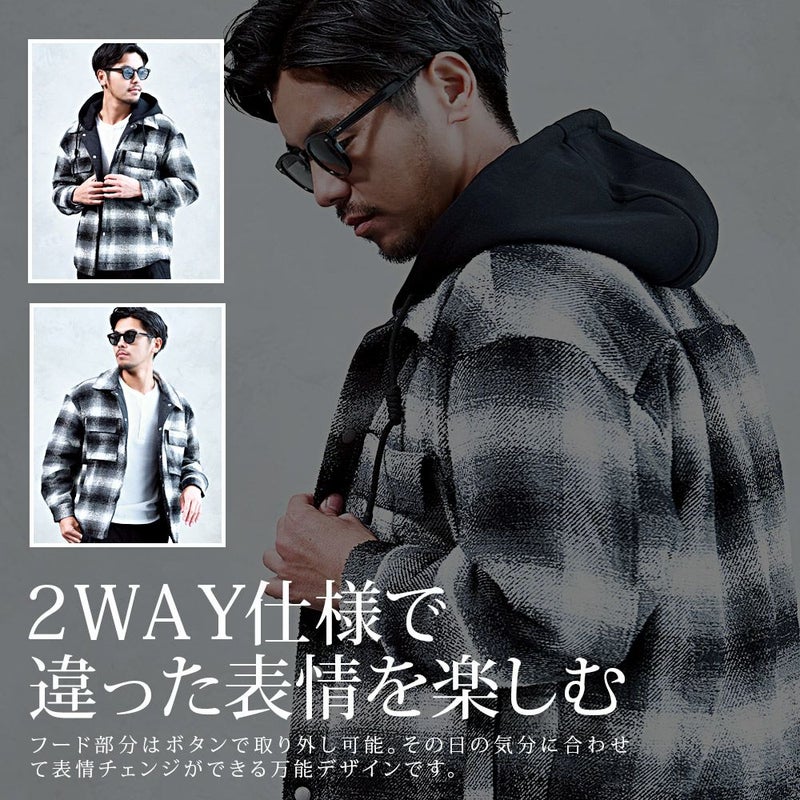 チェック柄シャツに、取り外し可能なフードをプラスした2WAY仕様。