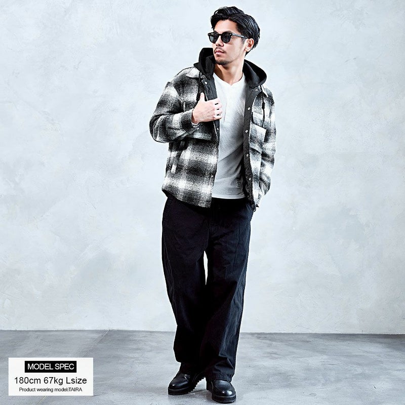 フードを付ければカジュアルかつストリートな印象に、外せばすっきりとしたシャツアウターとして着用できます。