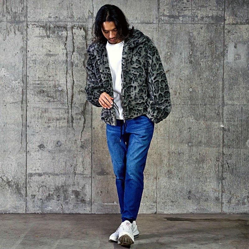 全体に施した豹柄が、コーディネートの主役になる存在感を演出。