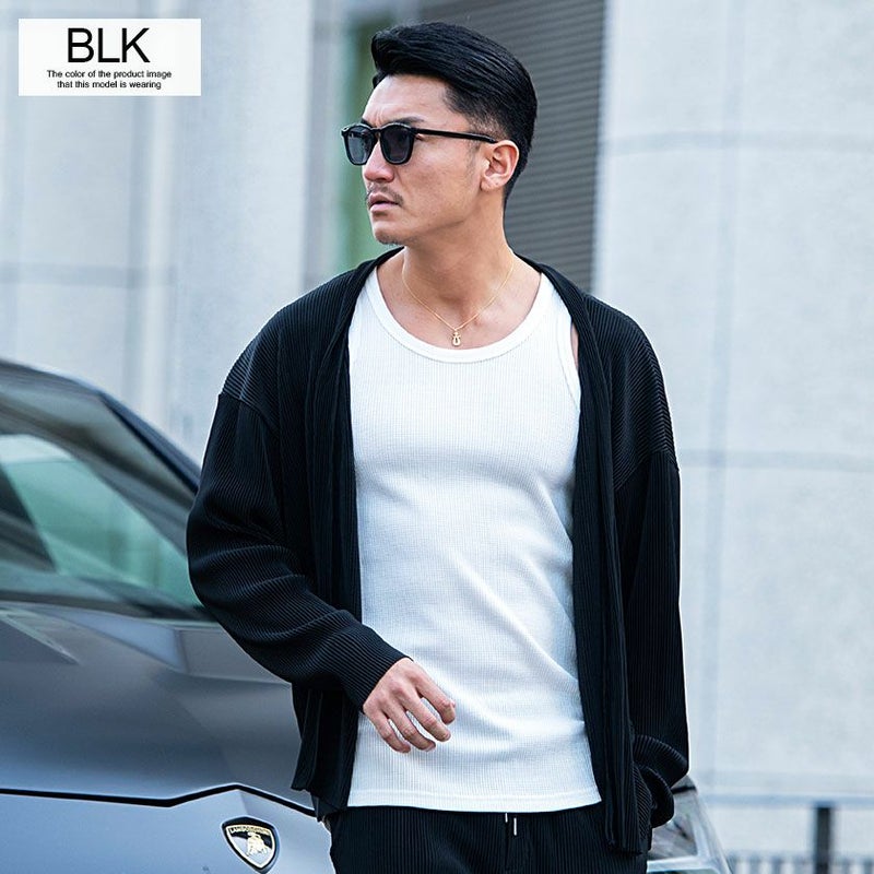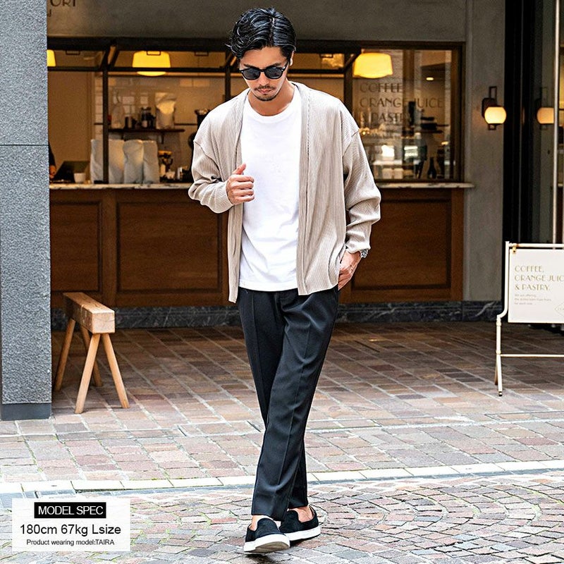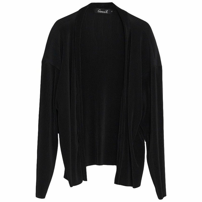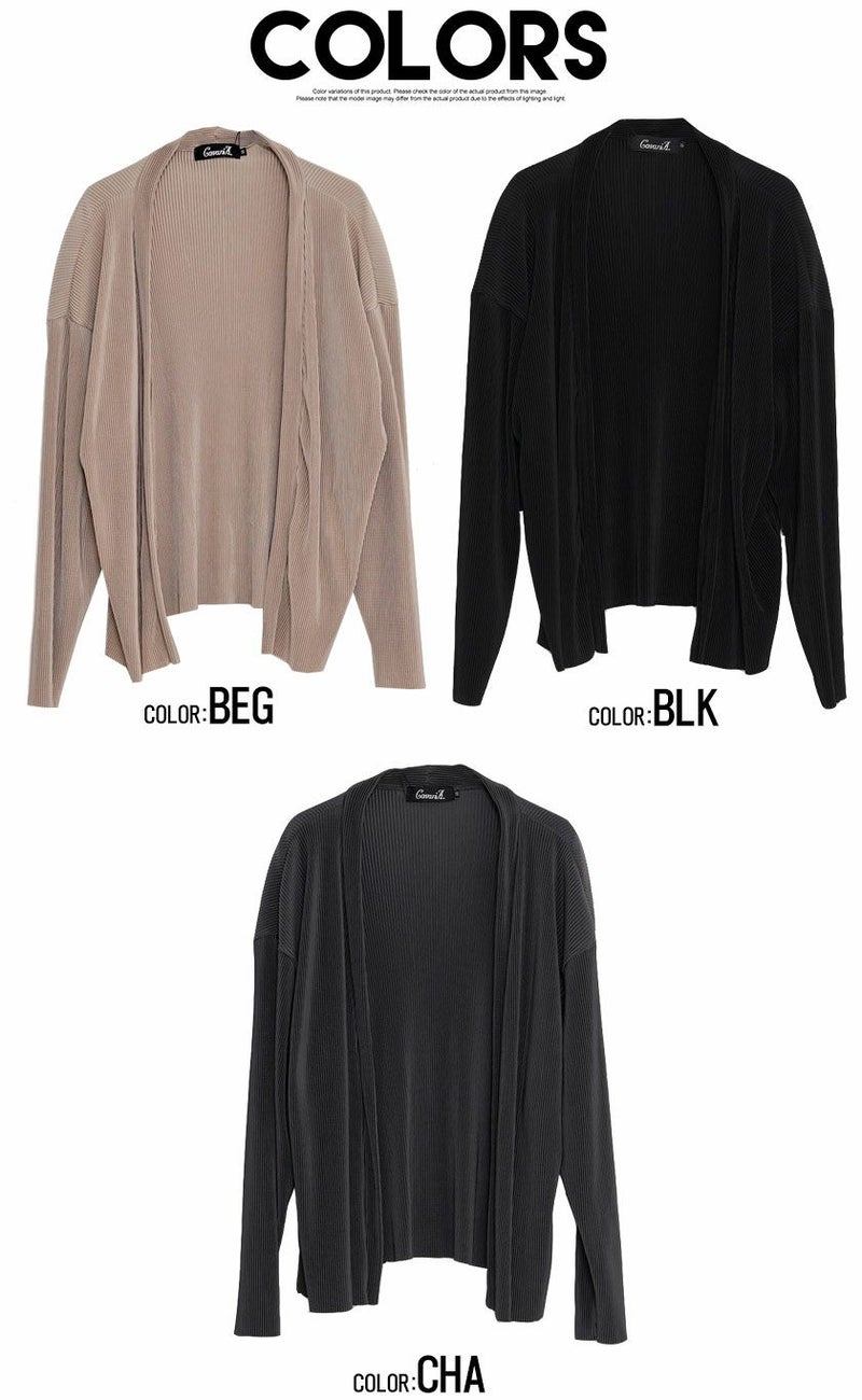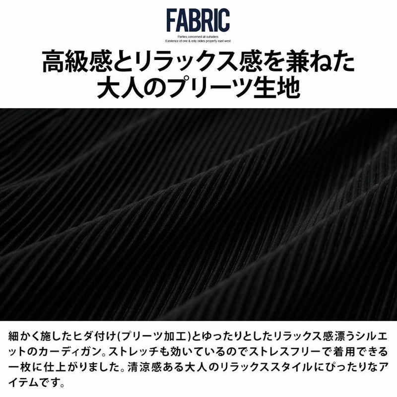 細かく施したヒダ付け(プリーツ加工)とゆったりとしたリラックス感漂うシルエットのカーディガン。
