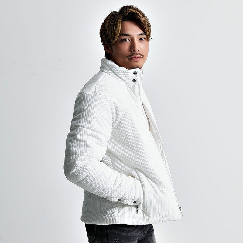 シックな表情を生み出すストライプ起毛素材を使用し、大人の品格を纏った一着に仕上げた中綿ジャケットです。