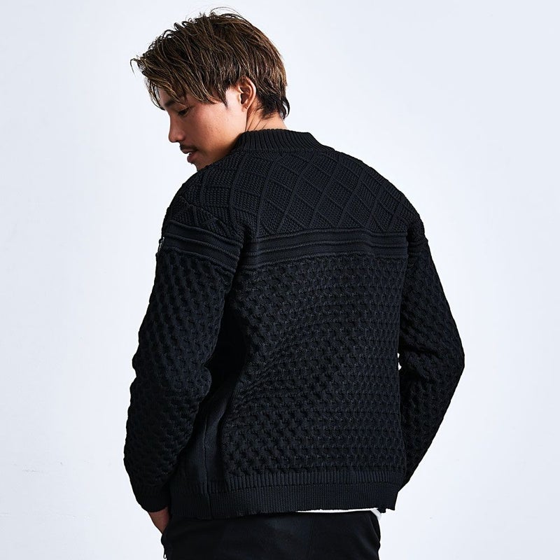 高級感のある編み地パターンを全面に施し、シンプルながら存在感のある一着に仕上がっています。