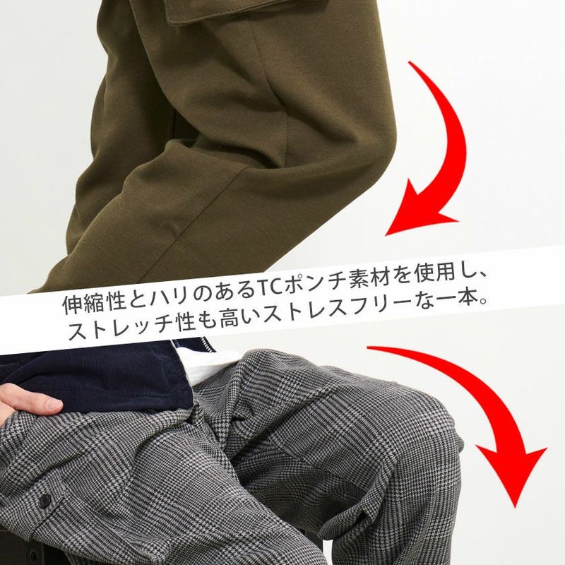 伸縮性とハリのあるTCポンチ素材を使用し、ストレッチ性も高いストレスフリーな一本。