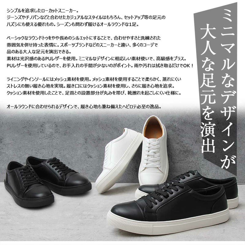 BITTER STORE(ビターストア)にBitter select【ビターセレクト】のスニーカーが入荷しました。 高級感のあるPUレザーを使用したローカットスニーカー。 ベーシックなラウンドトゥをやや長めのシルエットにすることで合わせやすさと洗練された雰囲気を併せ持った表情に。 ライニングやインソールにはメッシュ素材を使用し 蒸れにくくストレスのない履き心地を実現しました。 シンプルなデザインでオールシーズンお使い頂けるアイテムです。 ※モデル画像は照明などの影響により実際の商品と異なる場合がございます。