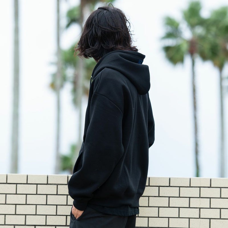 左胸、フード部分に施されたワンポイント刺繍がデザインのアクセントに。