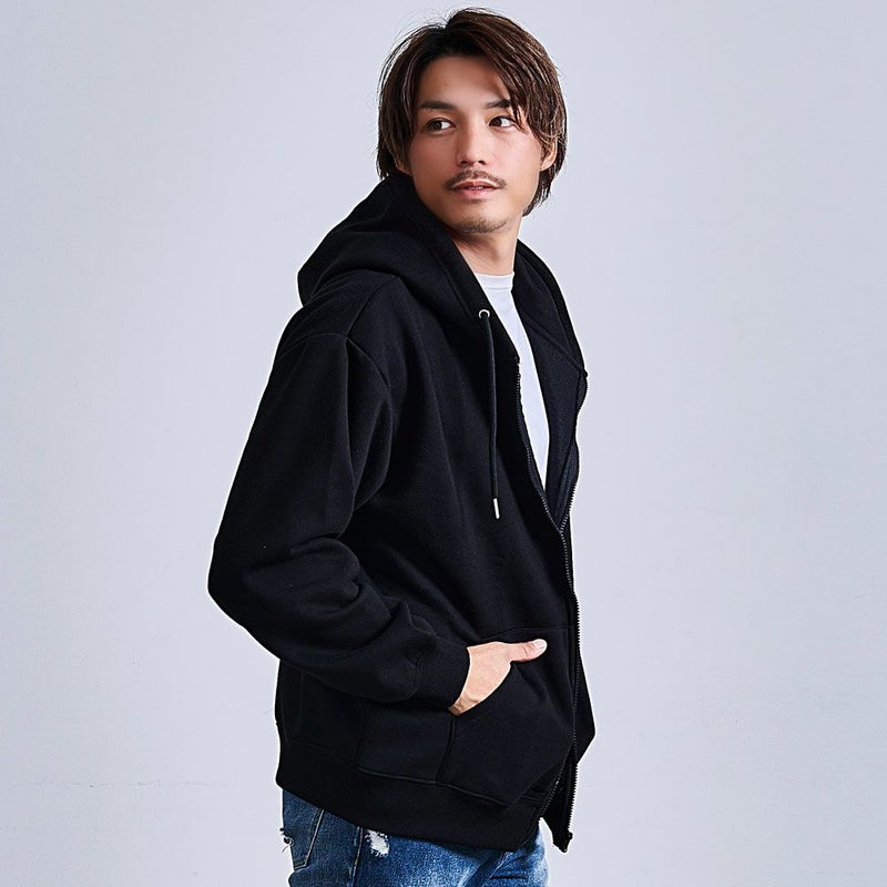 強度と速乾性、コットンの柔らかさや伸縮性を合わせ持った肉感のあるTC裏起毛素材を使用したジップアップパーカー。
