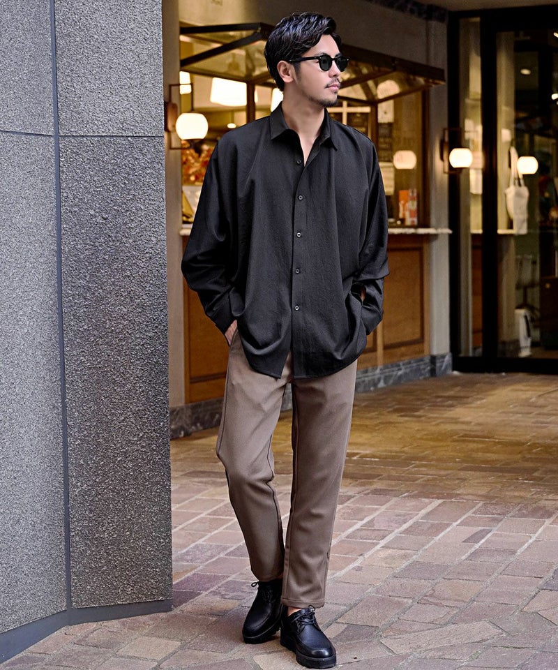 カジュアルからきれいめまで幅広いスタイリングに対応し、デニムやスラックス、ワイドパンツとも好相性。