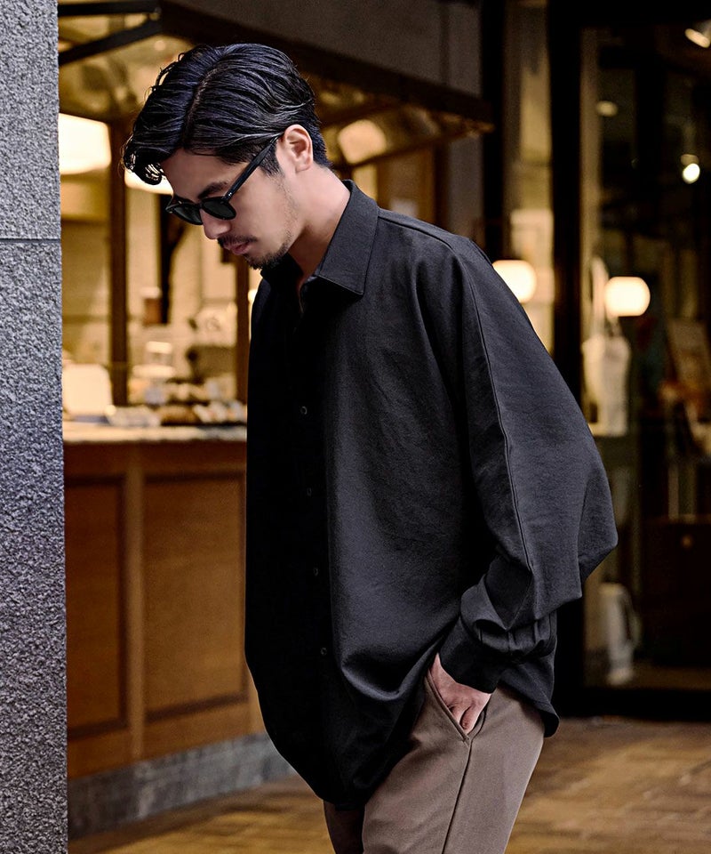 日常使いから休日のお出かけまで、シーズンを通して活躍するドルマンシャツとなっています。