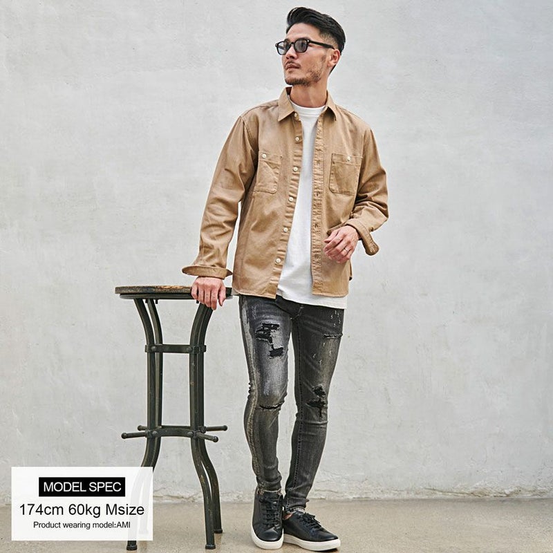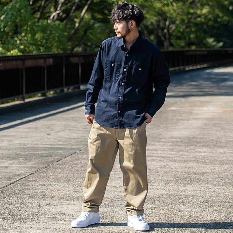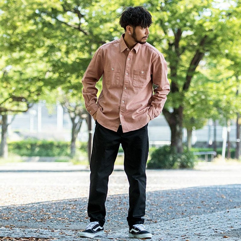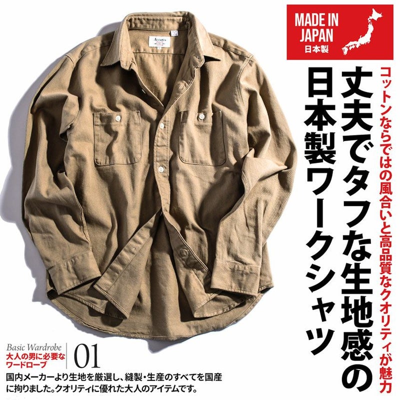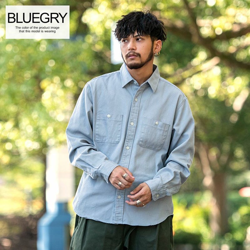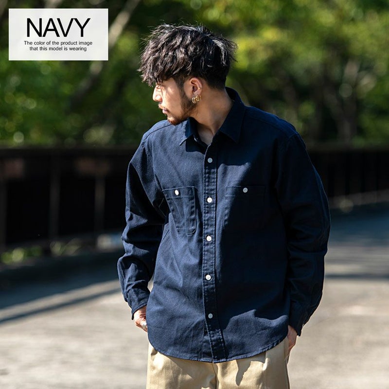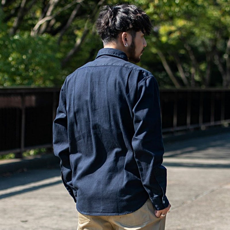 肉厚なツイル生地を国内工場で縫製した長袖シャツ。
