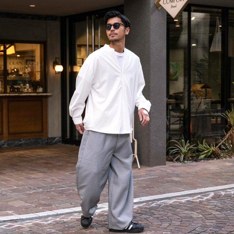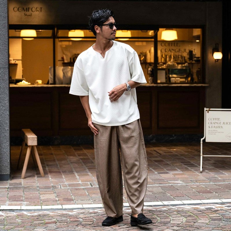 きれいめスタイルに:シャツやジャケットと合わせて品のあるスタイリングに。