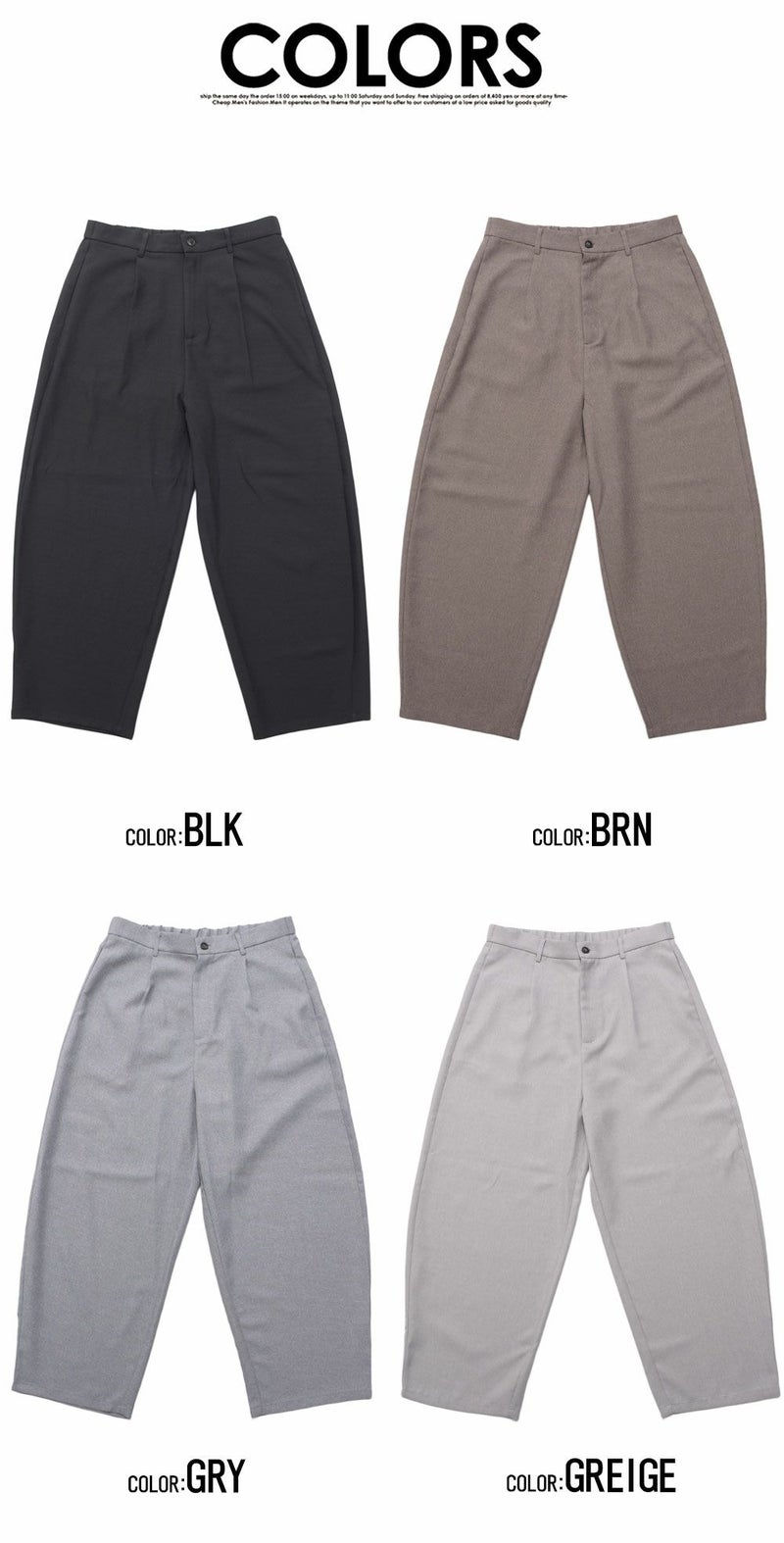 M:着丈100股上36股下65ウエスト39(最大+4cm)ヒップ58わたり(もも幅)36膝幅32裾幅23