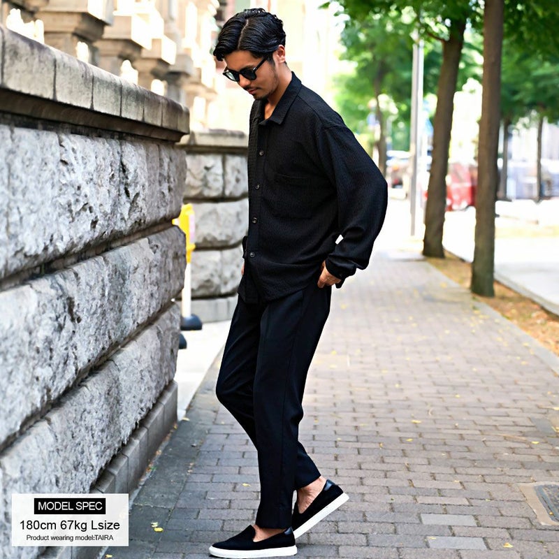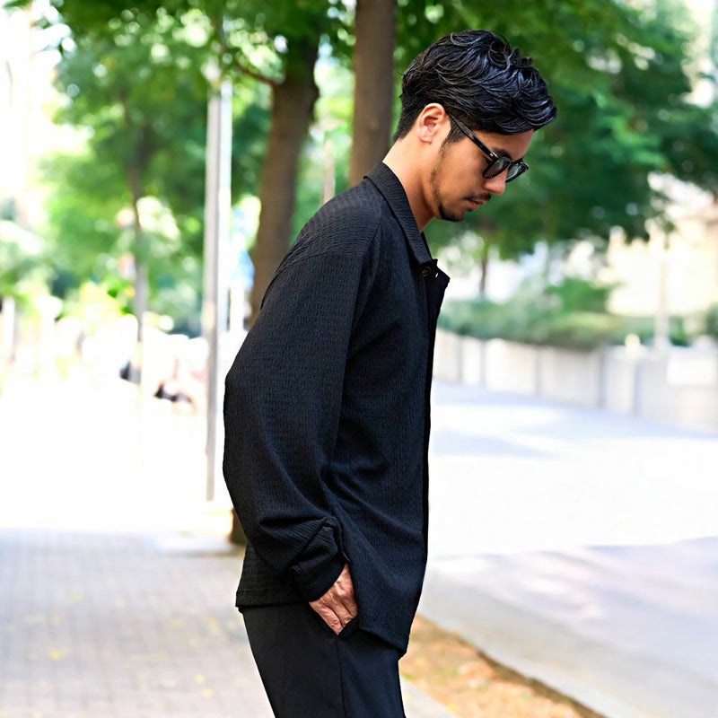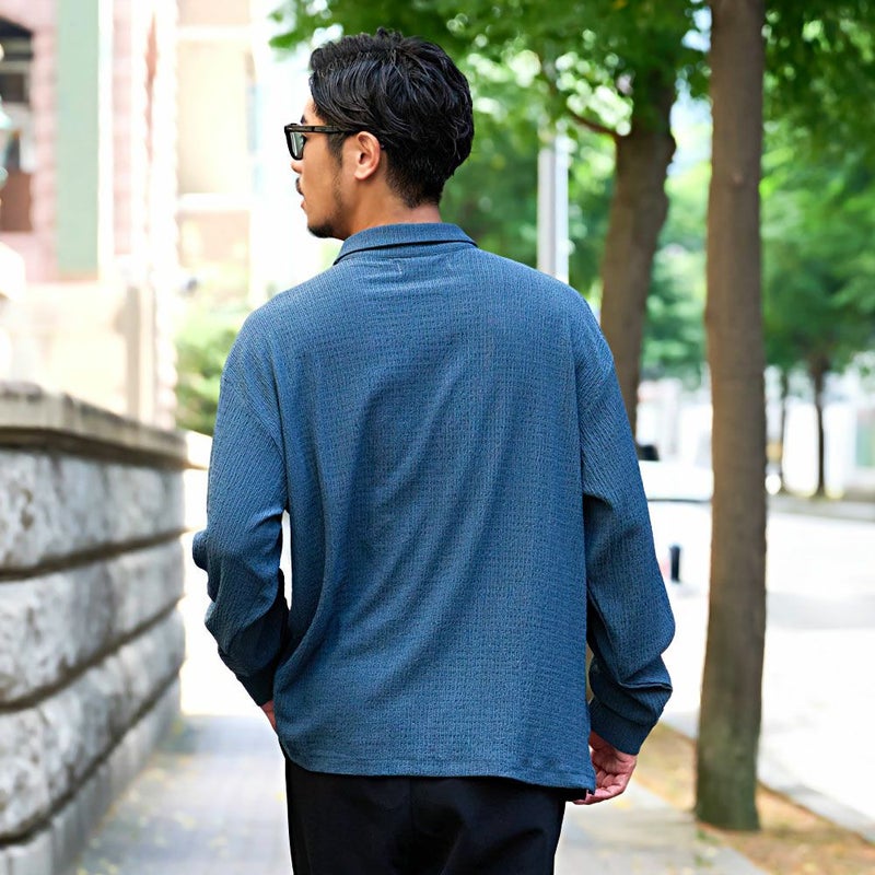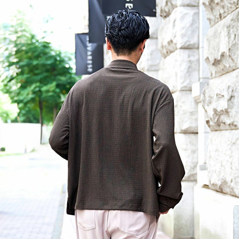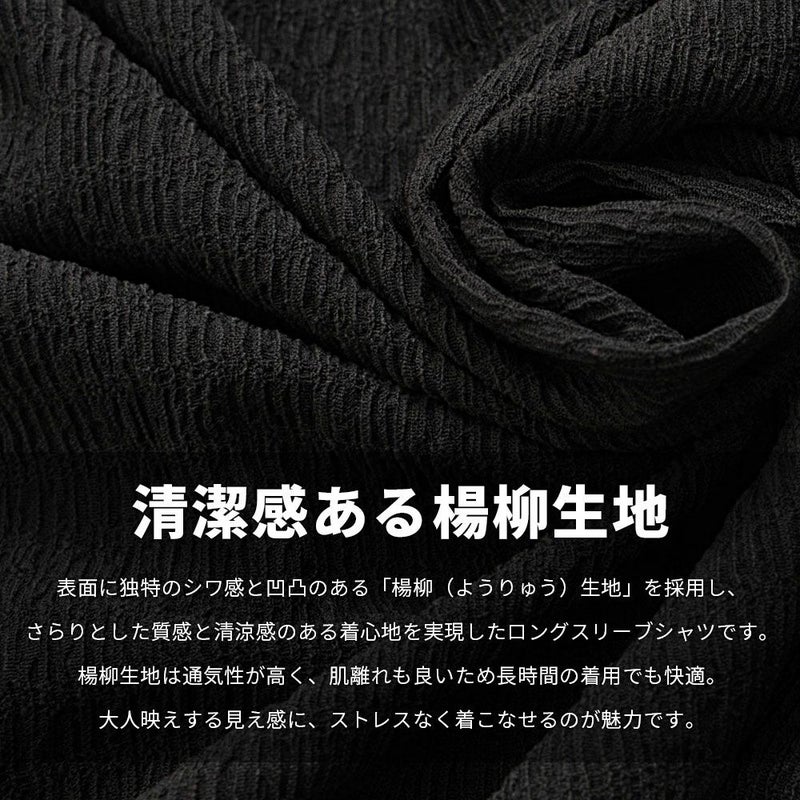 表面に独特のシワ感と凹凸のある「楊柳(ようりゅう)生地」を採用し、さらりとした質感と清涼感のある着心地を実現したロングスリーブシャツです。