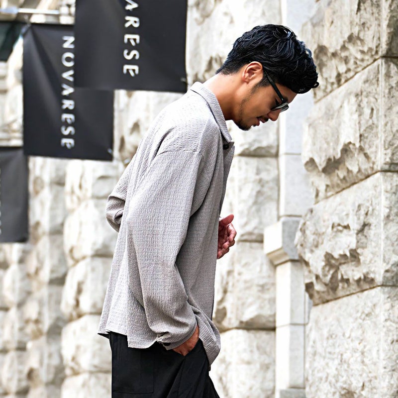 CavariAならではの程よいトレンド感とリラックスムードを兼ね備えた楊柳シャツ。