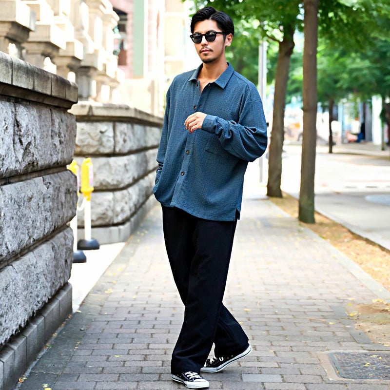 デニムやカーゴパンツとの相性も良く、オンからオフまで幅広く活躍できる万能シャツです。
