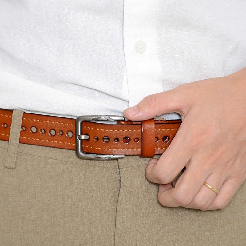 上質な重厚感のある牛革を使用したベルト。