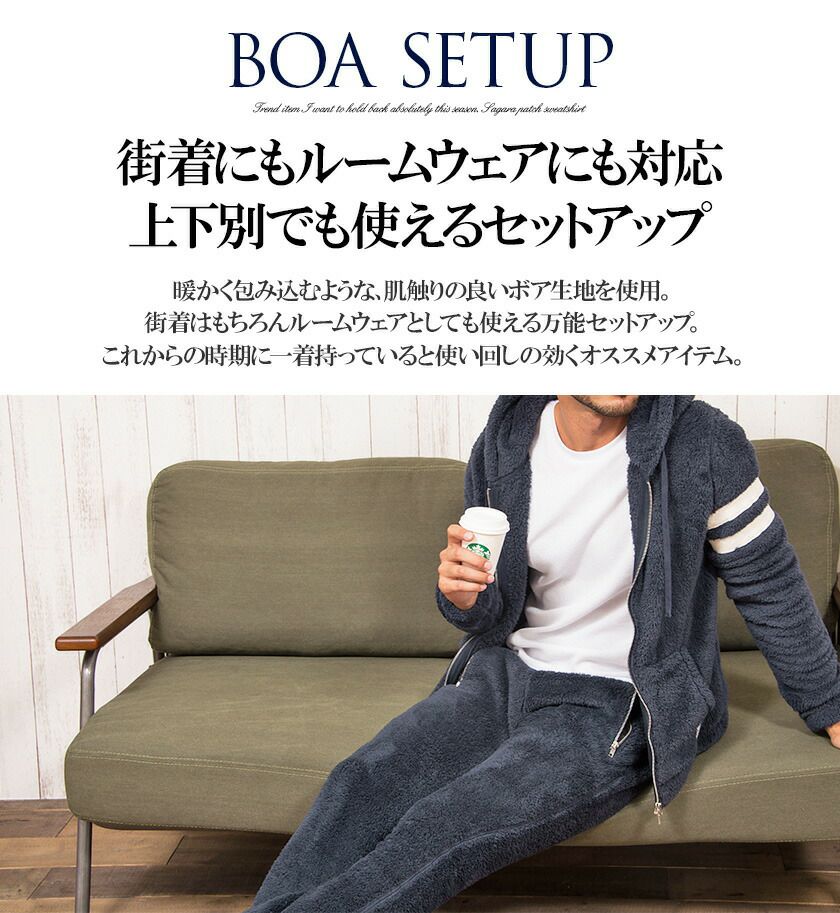 他の画像を見る ボア素材を使用した『着用感・デザイン性・暖かさ』を兼ね備えた毎年人気のアイテムが今年も登場。滑らかな肌触りと癖になるような柔らかさ、そしてモコモコとした独特の素材感が魅力。 CavariA(キャバリア)ライン入りボアセットアップ(パーカー&パンツ2点セット)/全4色 販売価格 ¥ 7,980 税込 カートに入れる お気に入りに登録する