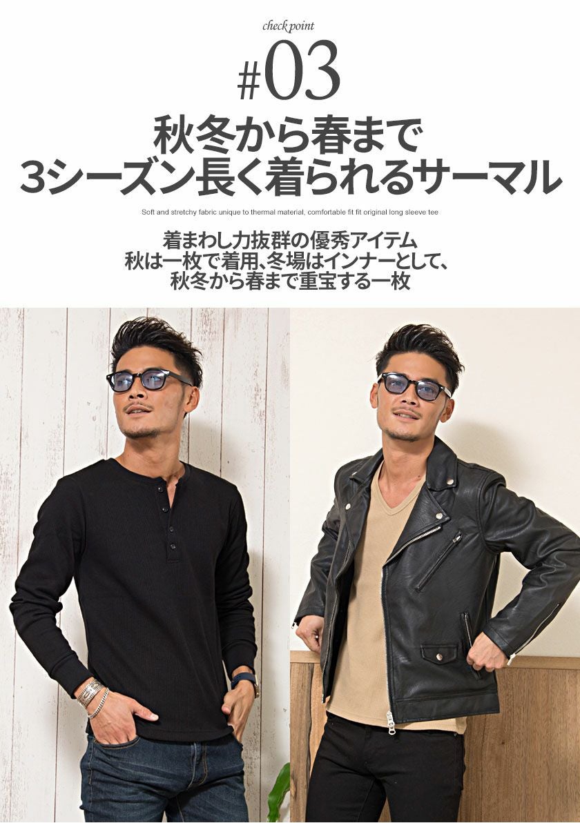 他の画像を見る Tシャツ メンズ 長袖 無地 ロンt 長袖Tシャツ シンプル ブランド サーマル ワッフル 黒 白 ブラック ホワイト グレー クルーネック Vネック ヘンリーネック シンプル 無地 カジュアル CavariA(キャバリア)3タイプからネックが選べるサーマル無地長袖Tシャツ/全7色 販売価格 ¥ 2,480 税込 カートに入れる お気に入りに登録する