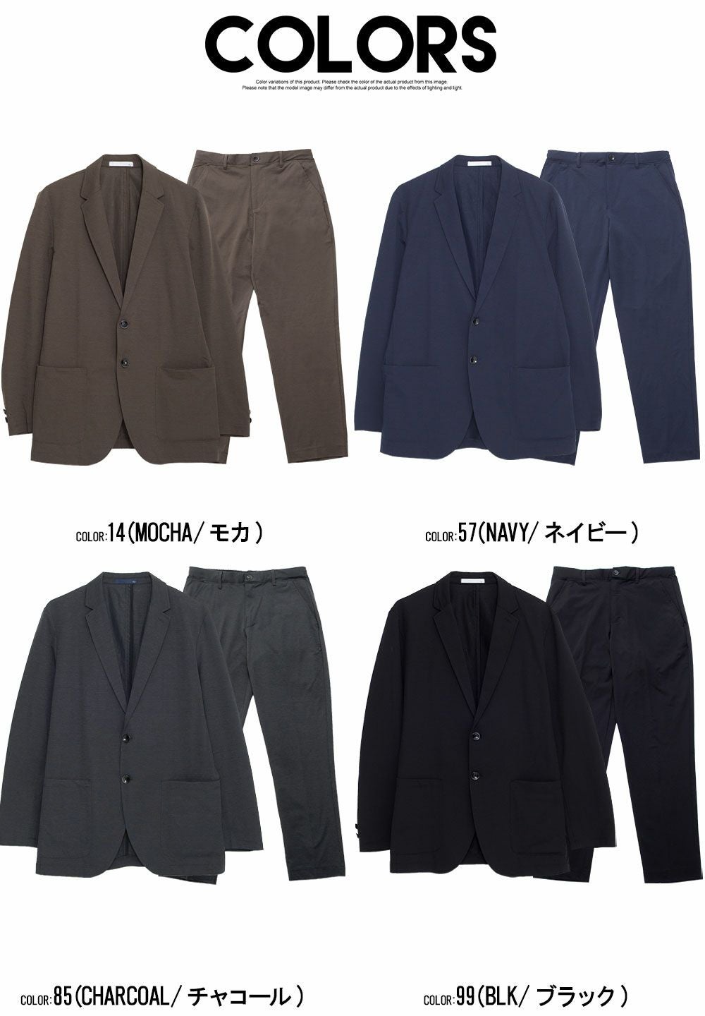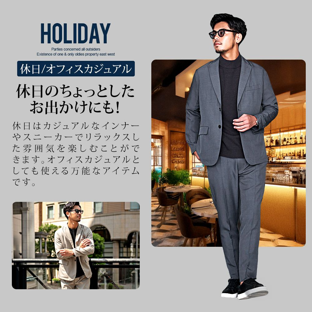 他の画像を見る ビジネスにもカジュアルにも対応するミニマルなデザイン。2wayストレッチ・吸水速乾・ウォッシャブルの機能性を備えた優秀セットアップ。 Bitter select(ビターセレクト)2wayストレッチテーラード+スラックスパンツ/全3色 販売価格 ¥ 6,980 税込 カートに入れる お気に入りに登録する