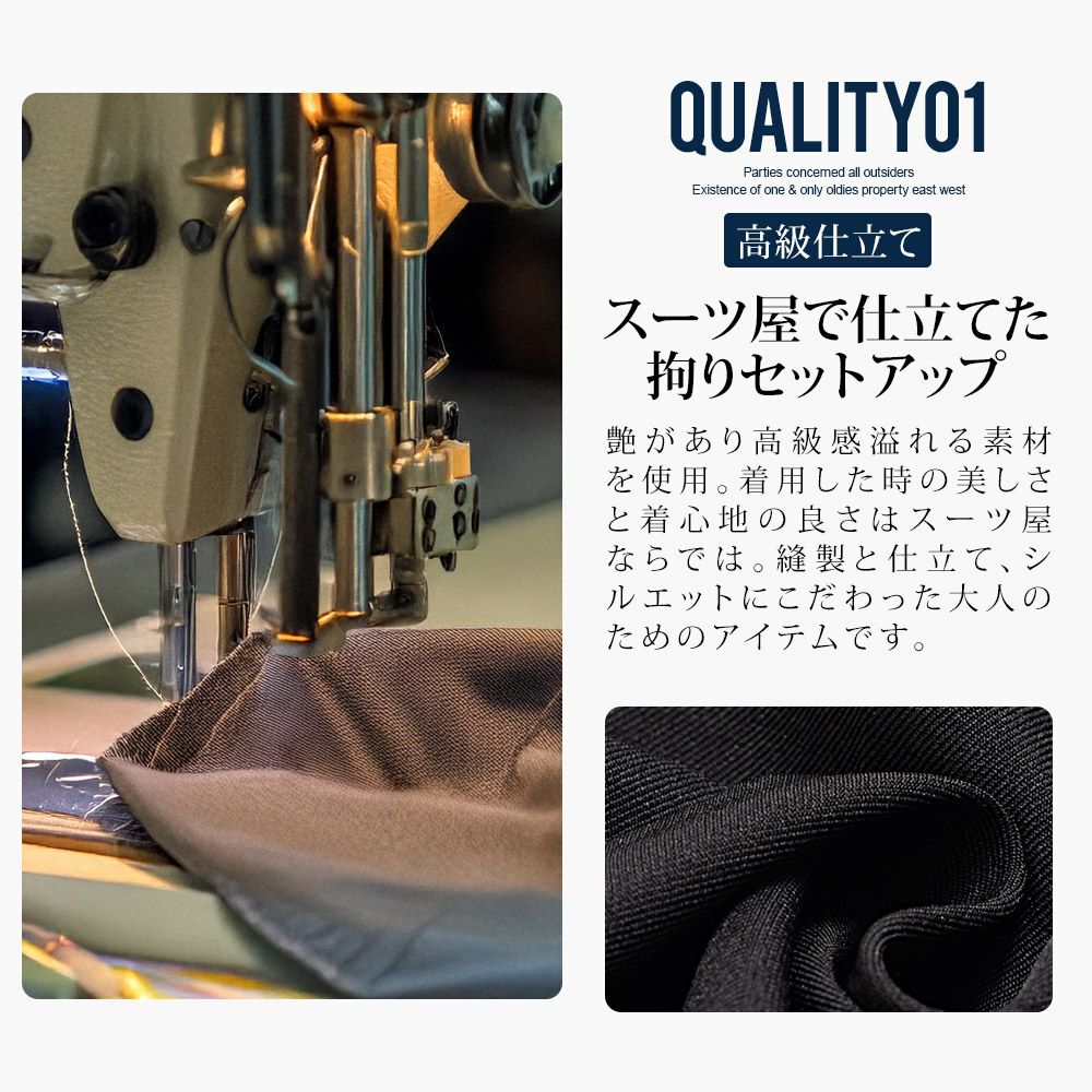他の画像を見る 送料無料 艶があり高級感溢れるストレッチ素材を使用したテーラードジャケットとテーパードパンツのセットアップ。縫製と仕立てに拘った自宅で洗濯可能な大人のためのアイテム。 【送料無料】CavariA(キャバリア)別注テーラード+アンクルテーパードパンツセットアップ/全4色 販売価格 ¥ 13,990 税込 カートに入れる お気に入りに登録する