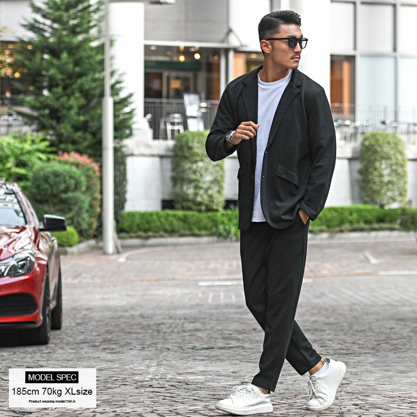他の画像を見る セットアップ メンズ テーラードジャケット スーツ イージーパンツ テイラード ブラック ネイビー グレー 黒 紺 M L きれいめ 細身 テレワーク 在宅勤務 リモートワーク VICCI(ビッチ)カットテーラードジャケットセットアップ(フルレングスパンツ)/全4色 販売価格 ¥ 6,980 税込 カートに入れる お気に入りに登録する