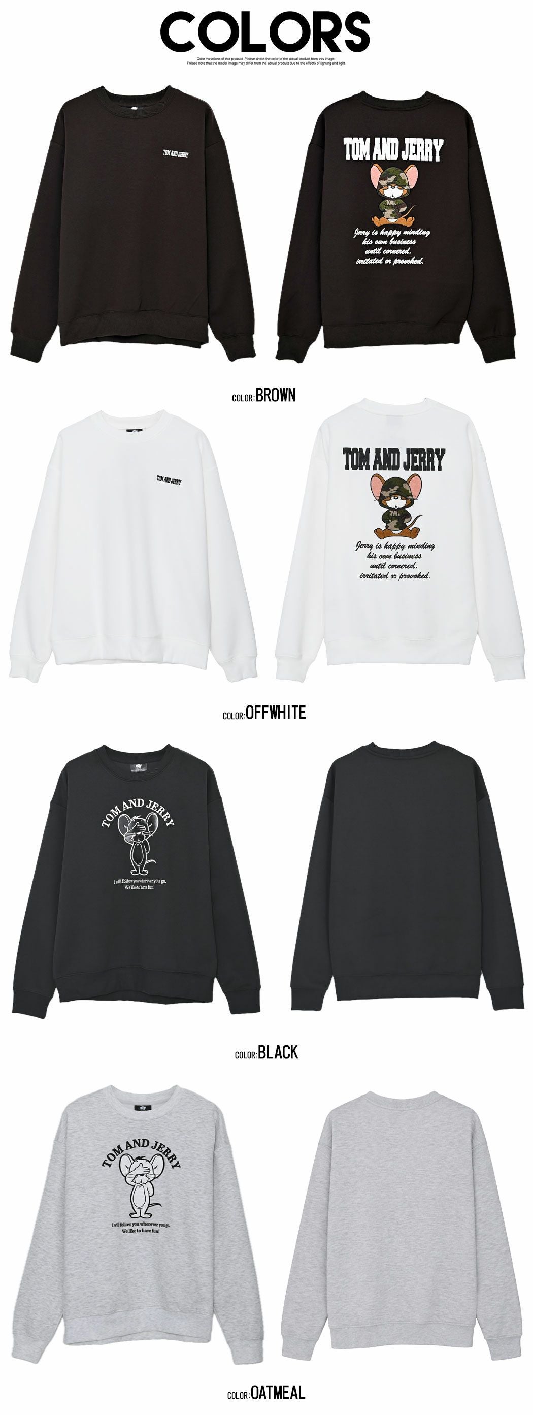 他の画像を見る 程よくゆとりのあるシルエットで、リラックス感がありながらもラフになりすぎず、普段のコーディネートに取り入れやすい仕上がり。 TOM&JERRY(トム&ジェリー)TJ クルーネック SWTシャツ 長袖/全4色 販売価格 ¥ 4,378 税込 カートに入れる お気に入りに登録する