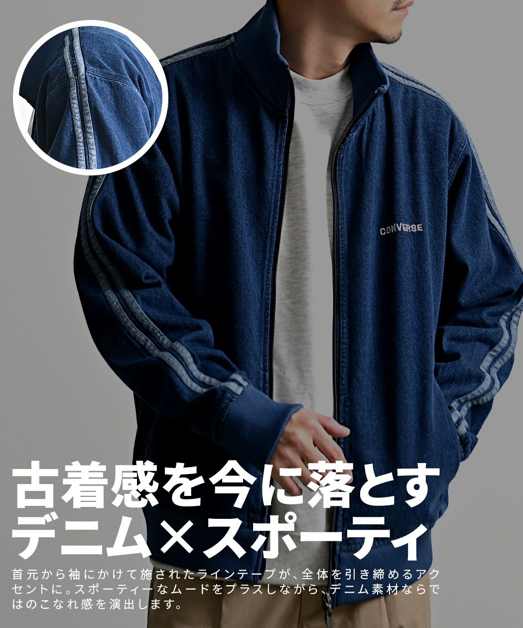他の画像を見る 古着ライクなデニムで魅せる、スポーティースタイル。CONVERSEトラックジャケット。 CONVERSE(コンバース)デニムトラックJKT/全2色 販売価格 ¥ 6,490 税込 カートに入れる お気に入りに登録する
