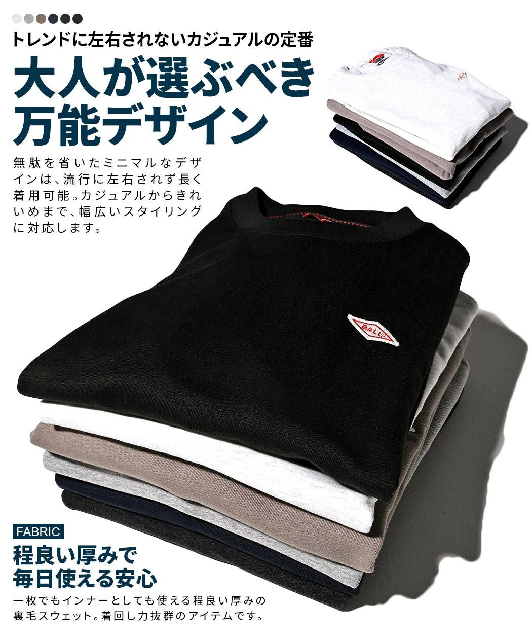 他の画像を見る シンプルだから、ずっと使える。ユニセックスで着用可能なスウェットトレーナー。 BALL(ボール)T/C裏毛ワッペン付きトレーナー/全6色 販売価格 ¥ 3,980 税込 カートに入れる お気に入りに登録する