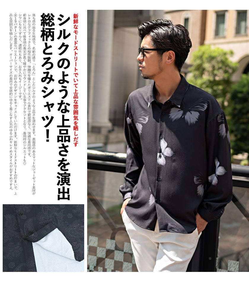 他の画像を見る 落ち感の出る生地感で、「とろん」としたシルクのような上品さを漂わせ、表面感のあるマットなジョーゼット素材がレトロなグラフィックとの相性抜群。窮屈感なく、快適な着用感です。 Bitter select(ビターセレクト)総柄長袖とろみシャツ/全28色 販売価格 ¥ 5,390 税込 カートに入れる お気に入りに登録する