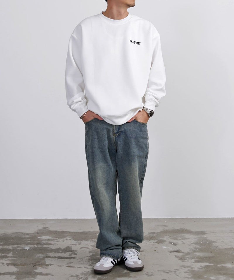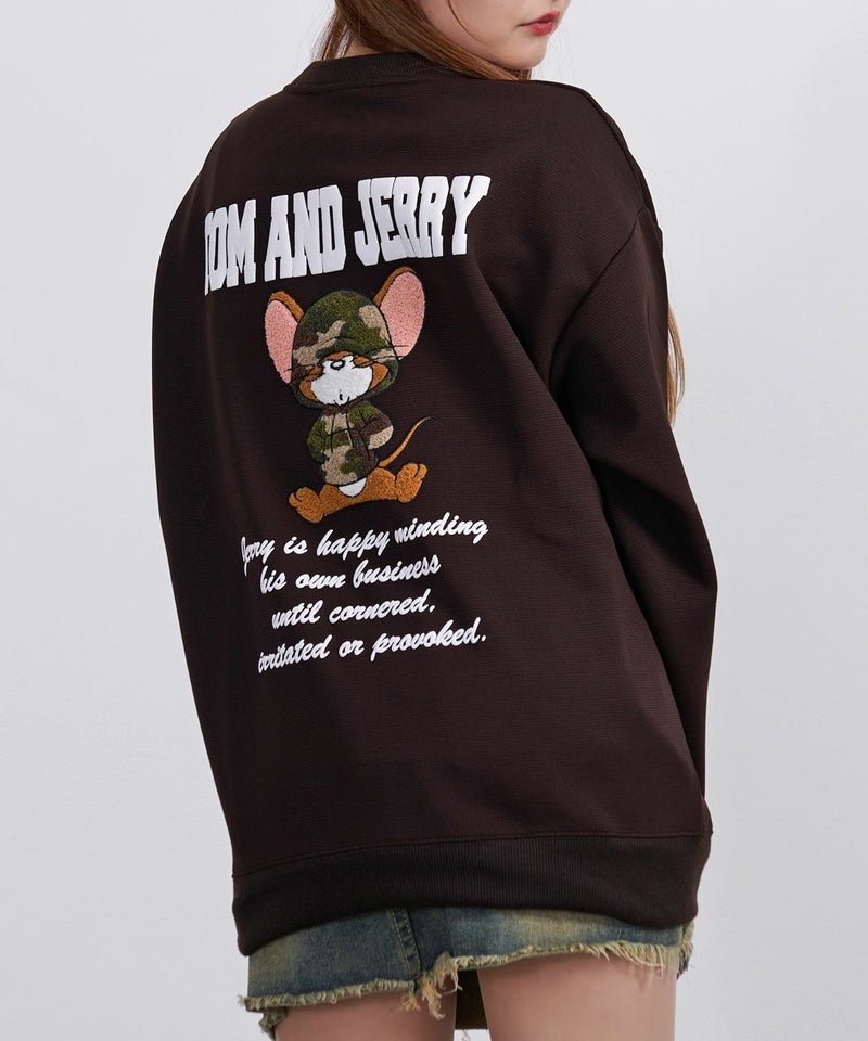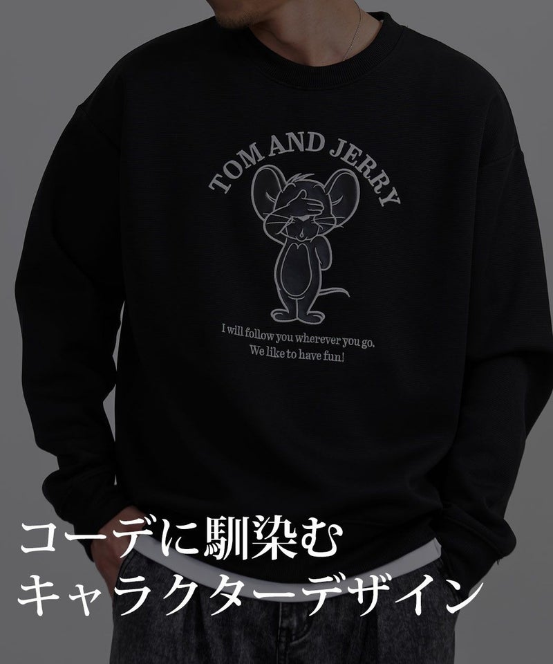 TOM&JERRY(トムとジェリー)デザインを落とし込んだ、クルーネックタイプの長袖スウェットシャツ。